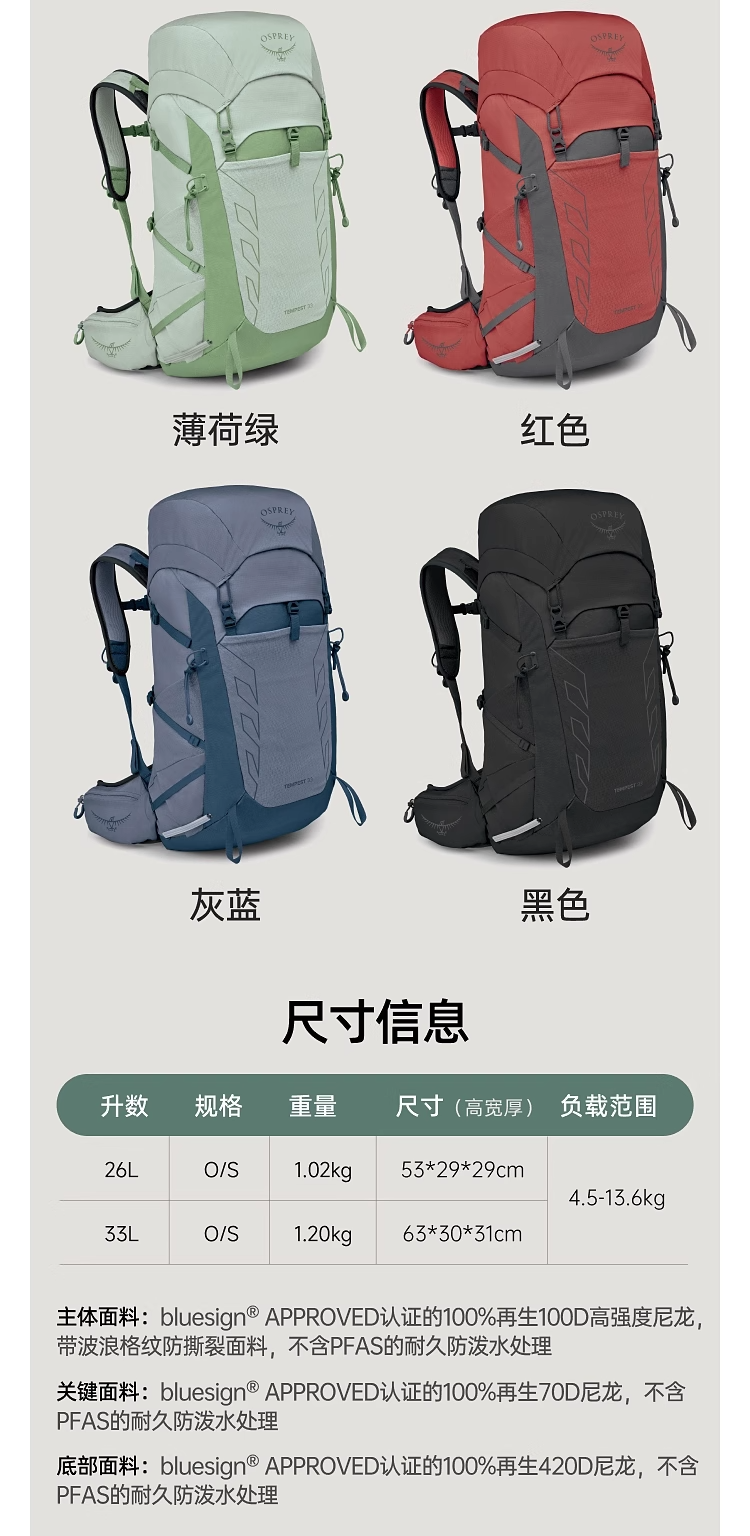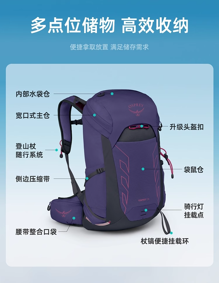OSPREY Tempest 26L暴风25款户外旅行登山徒步双肩背包大容量女新款
