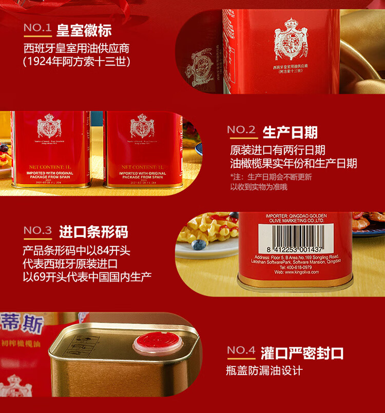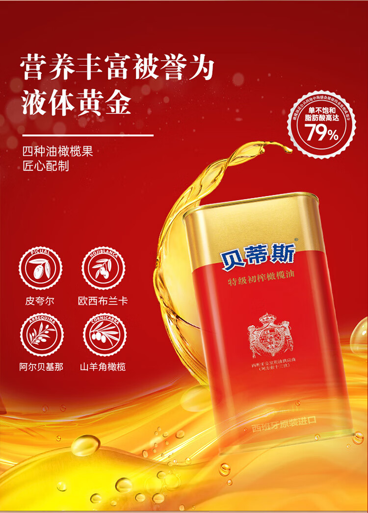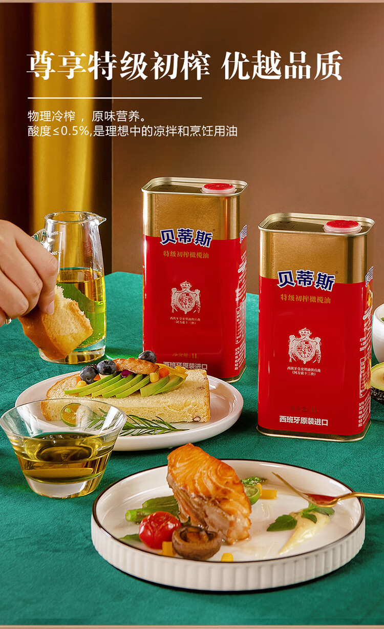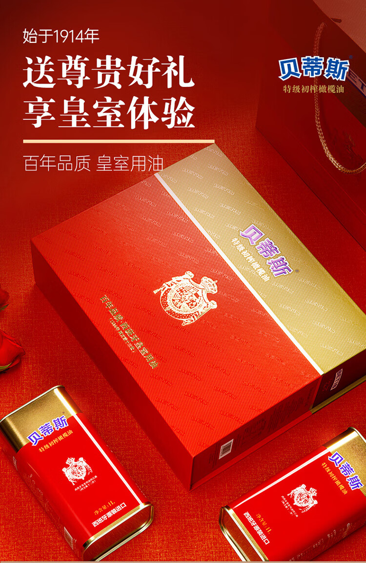 贝蒂斯 特级初榨橄榄油礼盒装 1L*2/盒