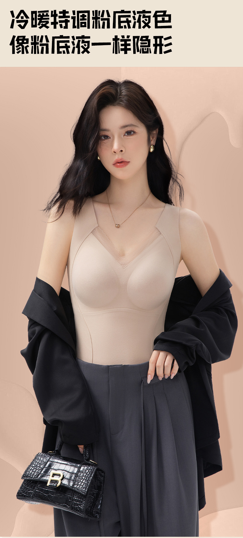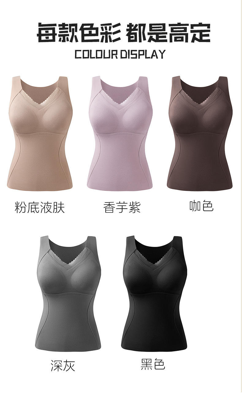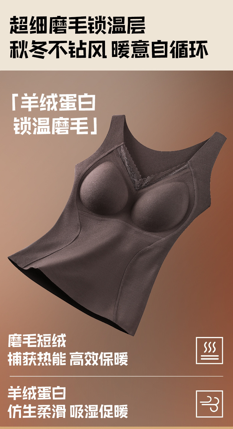 【温暖过冬❗️羊绒蚕丝保暖背心】一件抵保暖衣+塑形衣+精油衣+打底衣,免穿内衣,自带文胸垫!蕾丝磨毛亲肤欧若风打底上衣马甲女