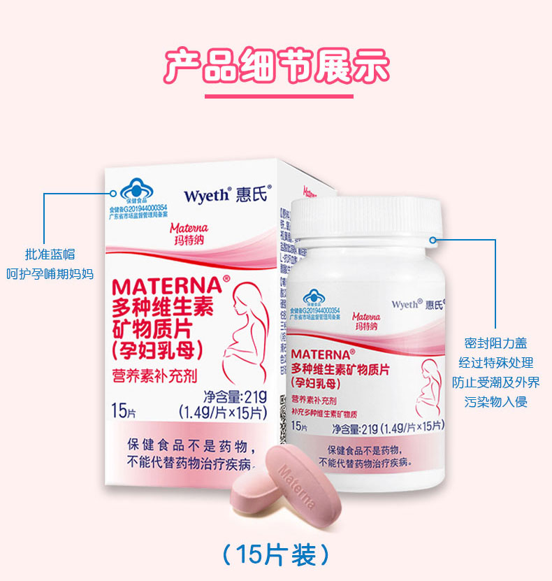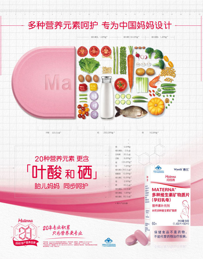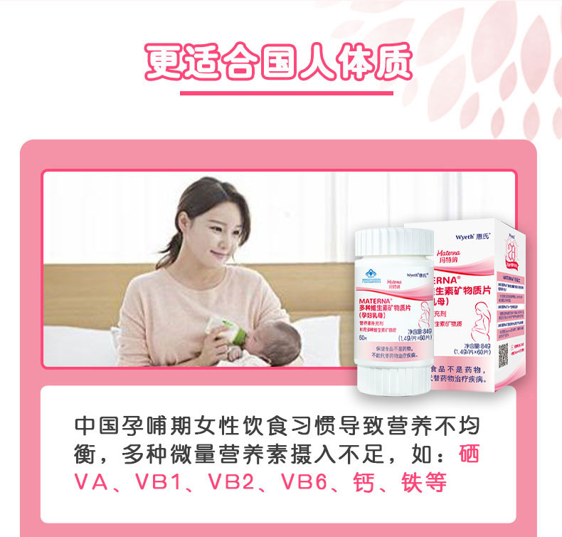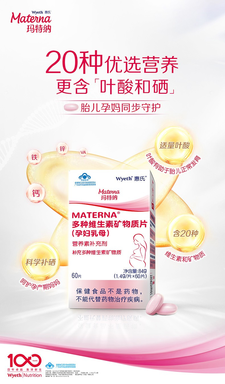 惠氏玛特纳(Materna)多种维生素矿物质片备孕/孕妇/哺乳期叶酸+硒60片