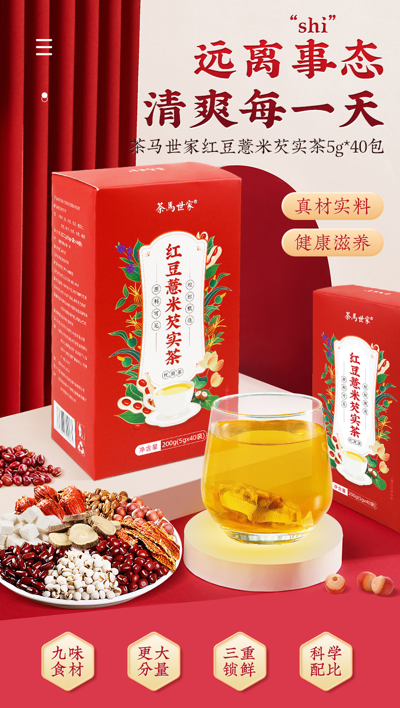 茶马世家丨红豆薏米芡实茶 代用茶 轻松茶 200g(40包) 赶走湿态 常喝一身轻松