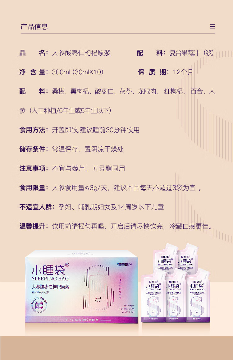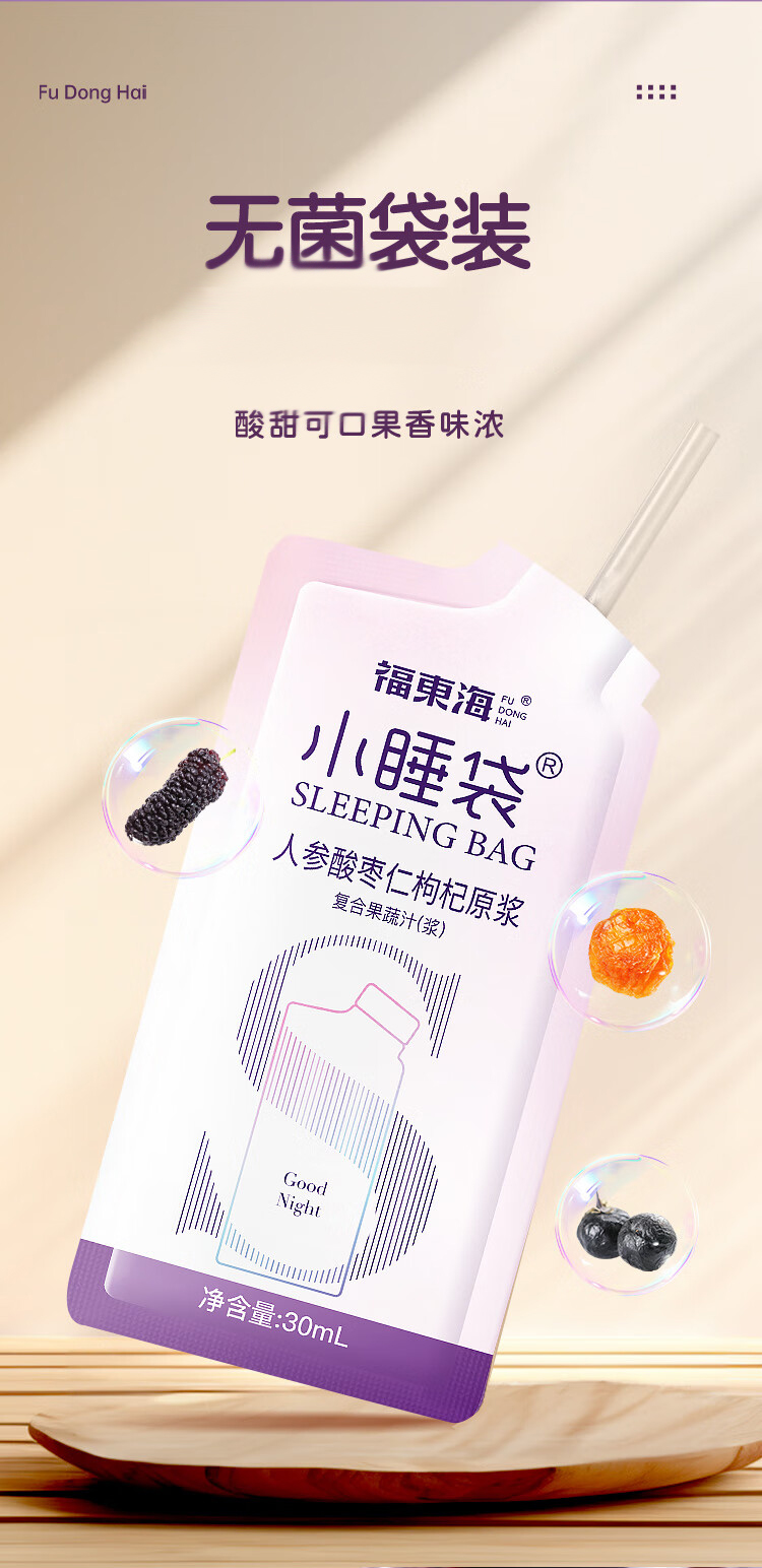 福东海 小睡袋300Ml 桑葚黑枸杞人参酸枣仁百合原浆睡前喝 (30ml*10袋)