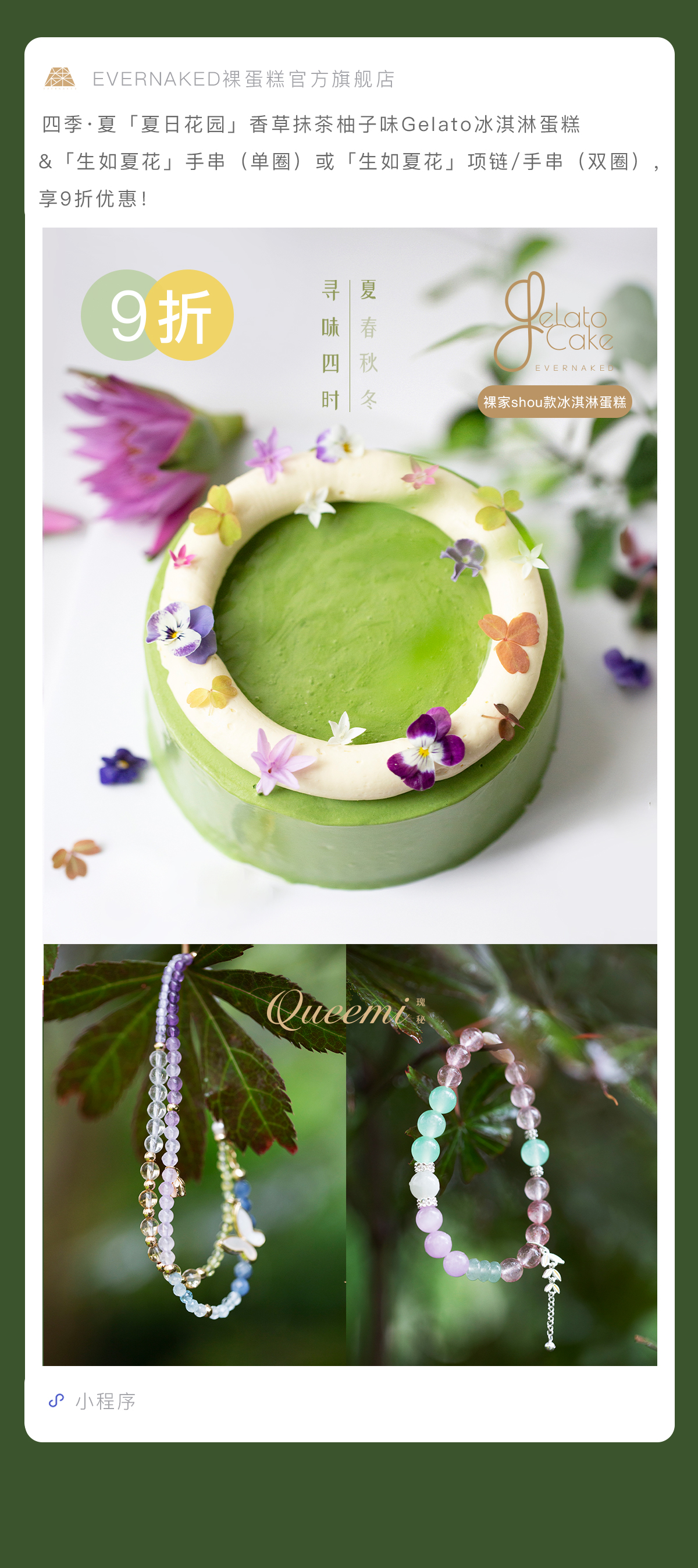 四季·夏「夏日花园」香草抹茶柚子味Gelato冰淇淋蛋糕(夏之味:香草、抹茶&柚子)