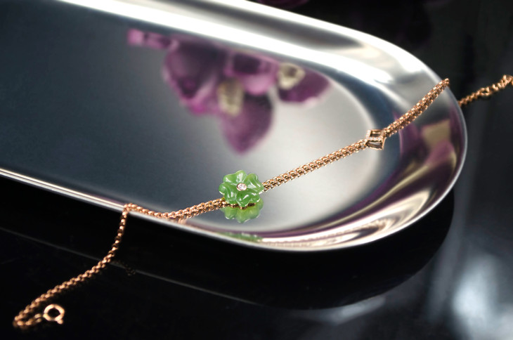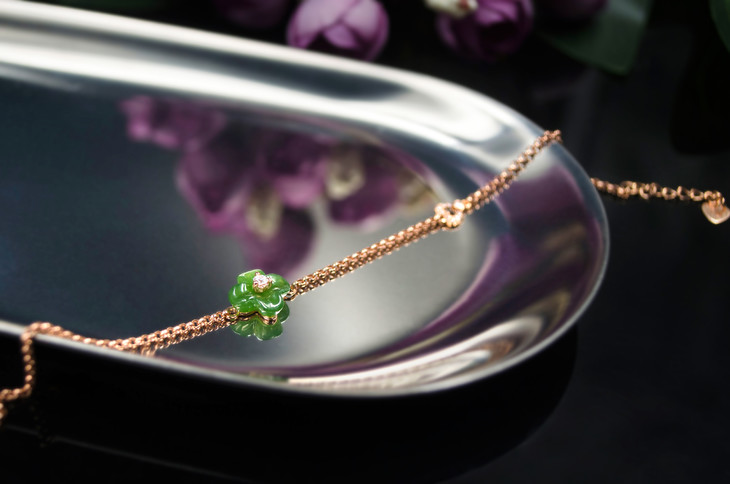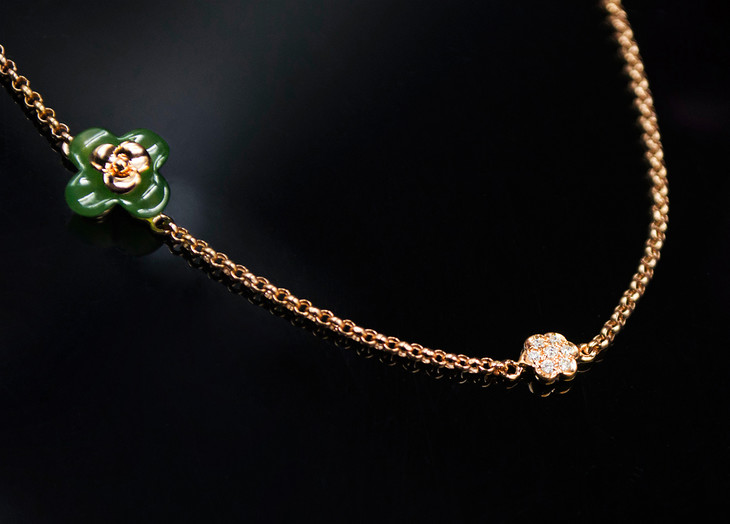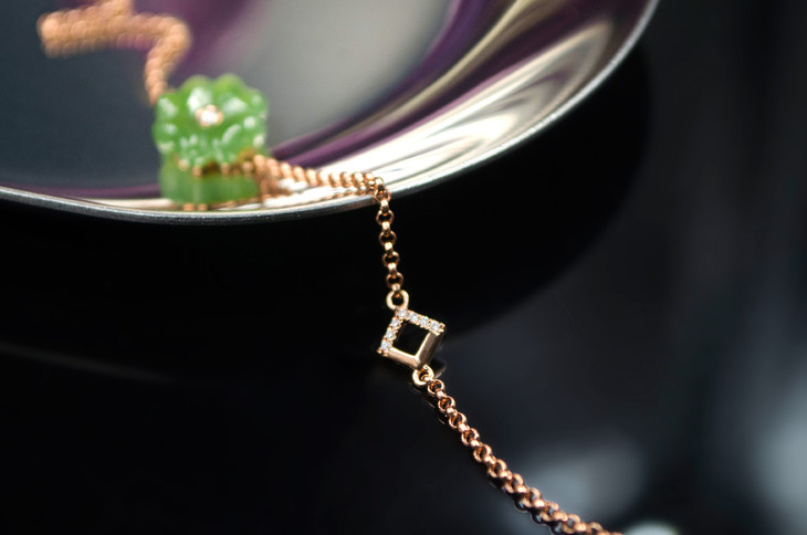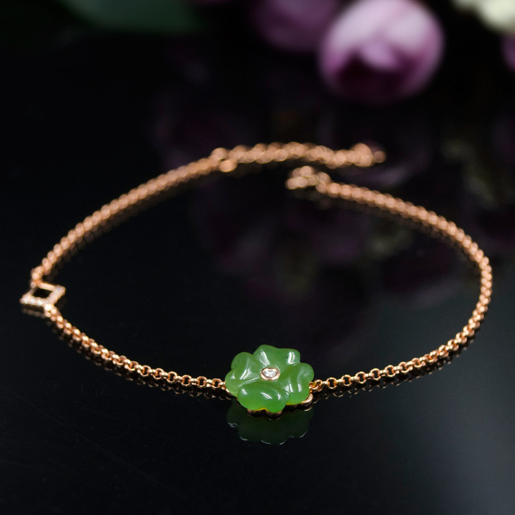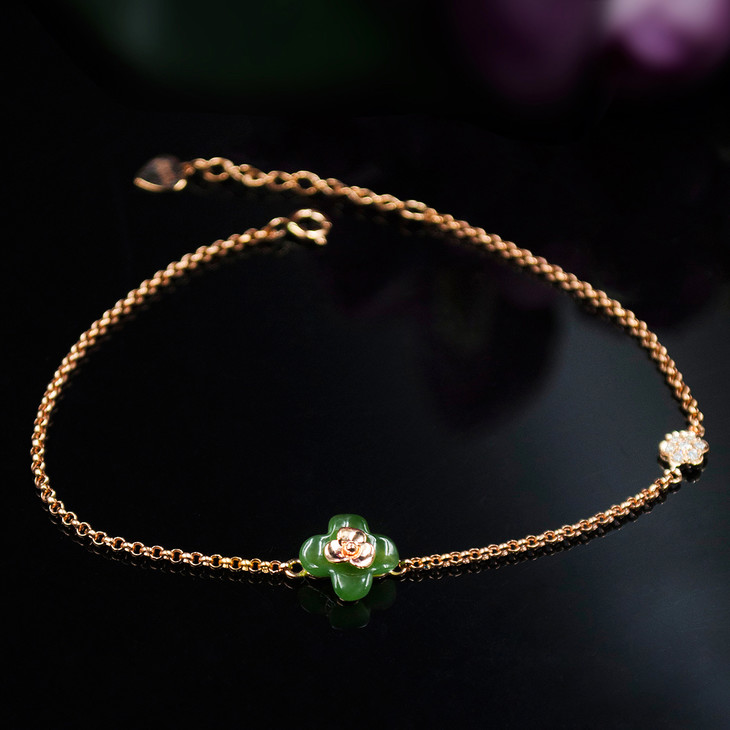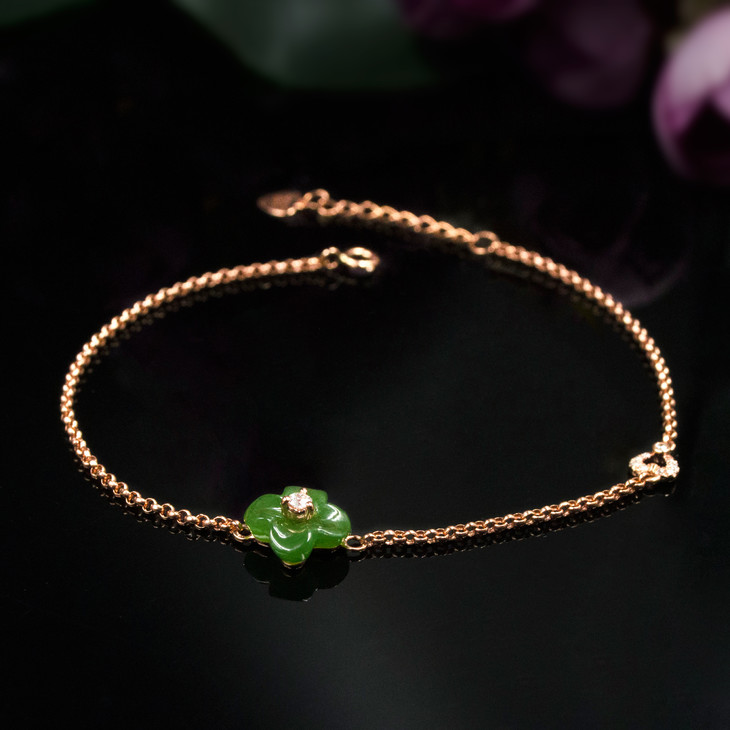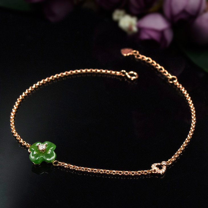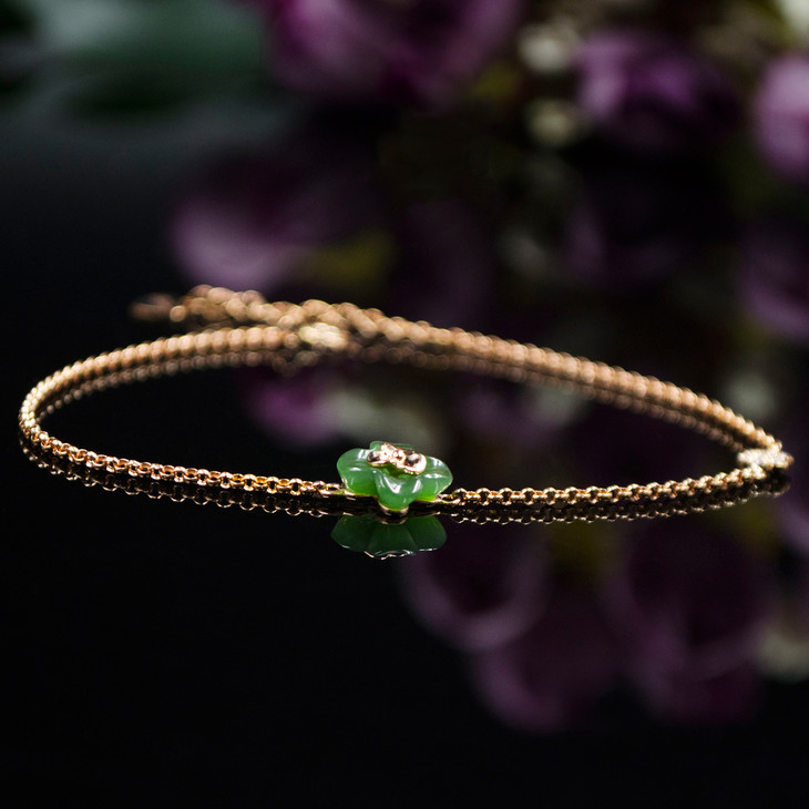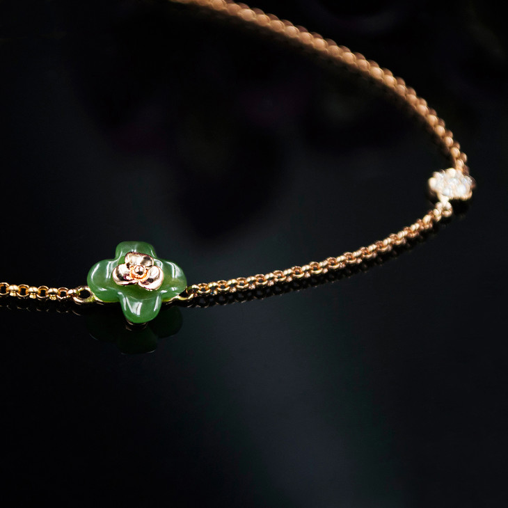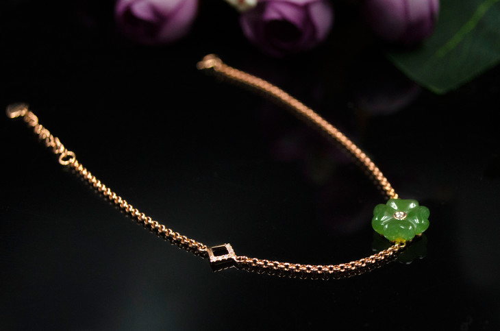 18K玫瑰金和田玉(碧玉)镶钻手链
