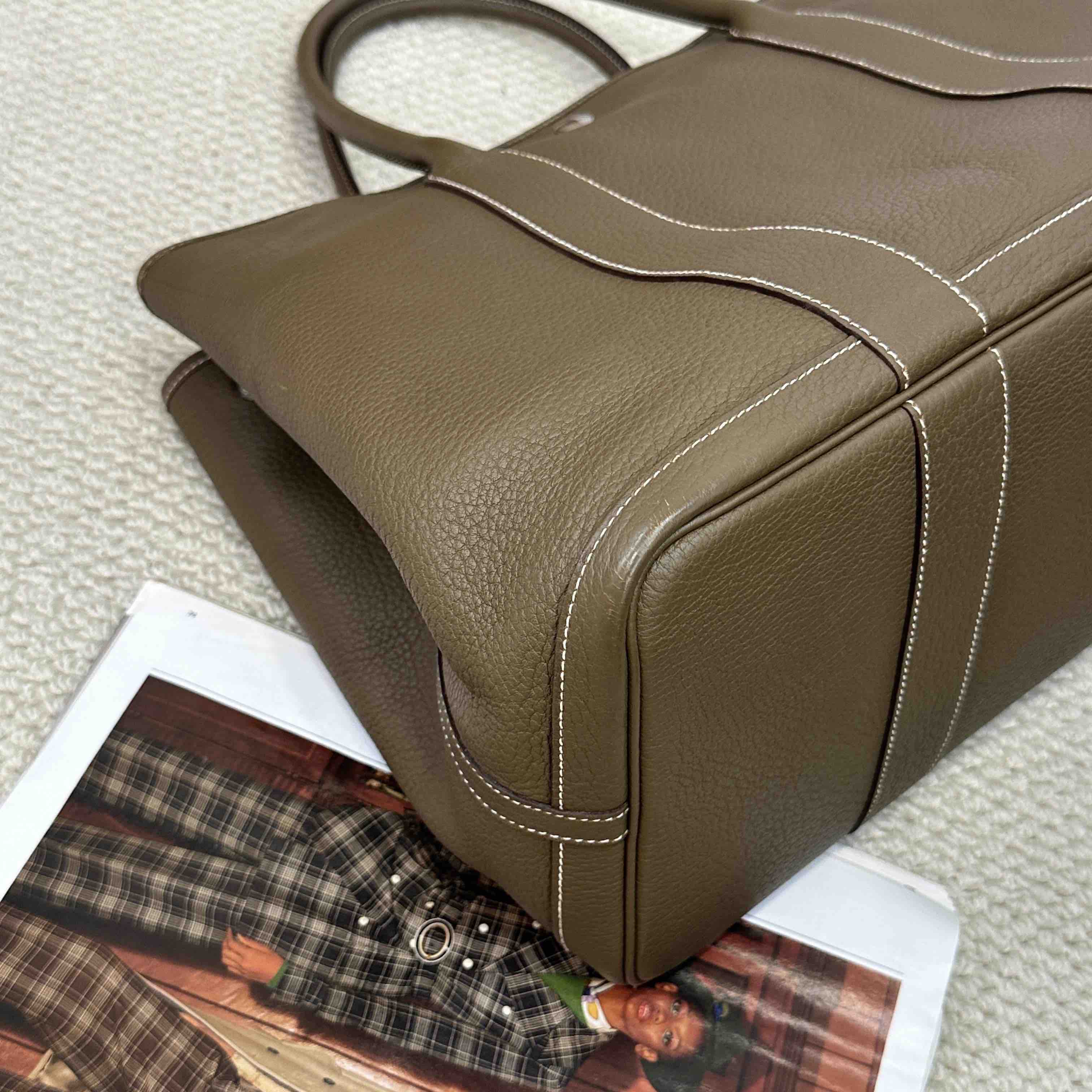 【商品详情】正品二手 爱马仕 garden 花园36 大象灰 全皮 手提包🪴95新 36*26 方块K刻。包底和包口边角有轻微使用痕迹 包面和内里干净