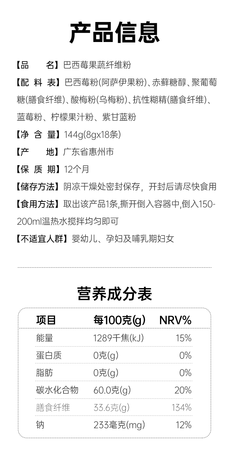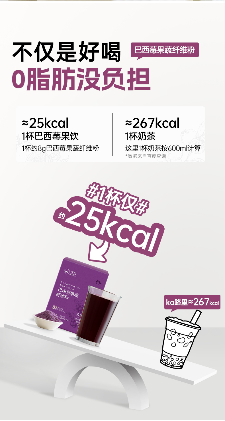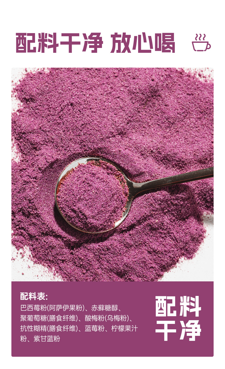 巴西莓粉莓果蔬膳食纤维粉官方旗舰店冲泡冲饮花青素蔬菜粉代餐粉