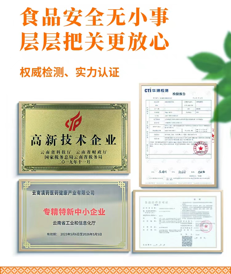 2、本产品为药食两用原料研制的健康食品,不可替代药物的治疗作用。