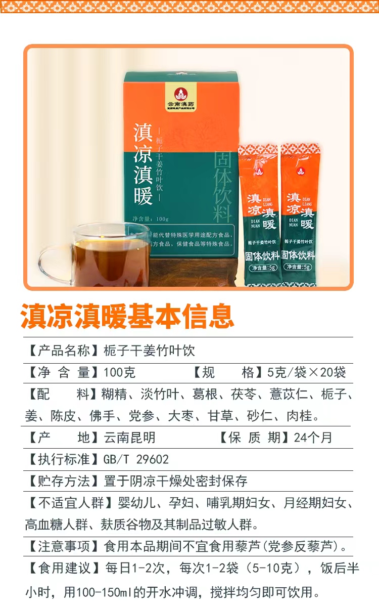 滇凉滇暖栀子干姜竹叶饮(5g*20袋/盒)