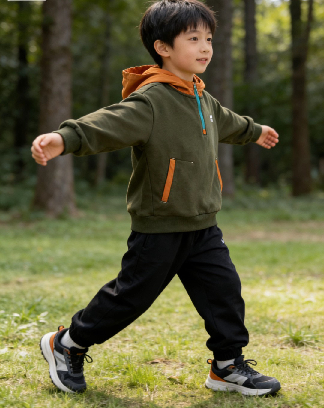奔跑、漫步、轻跳,各种灵动姿态,上身元气又清爽,妥妥的童装官网大片感!