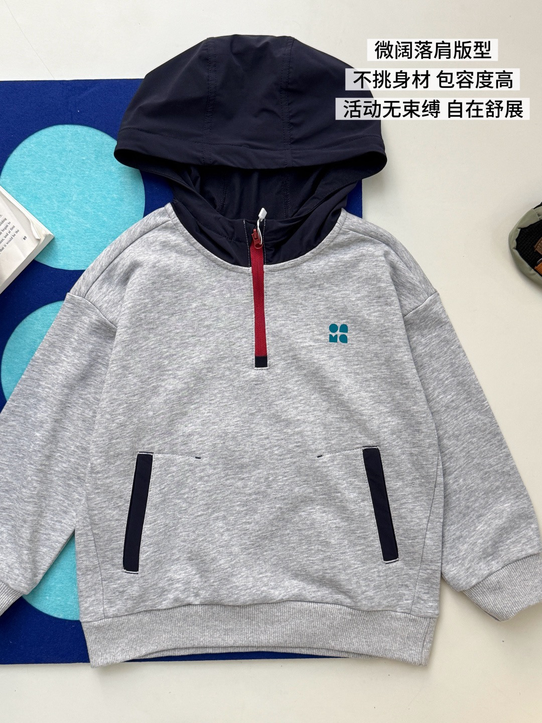 🔥 春款上新|儿童半拉链撞色连帽卫衣