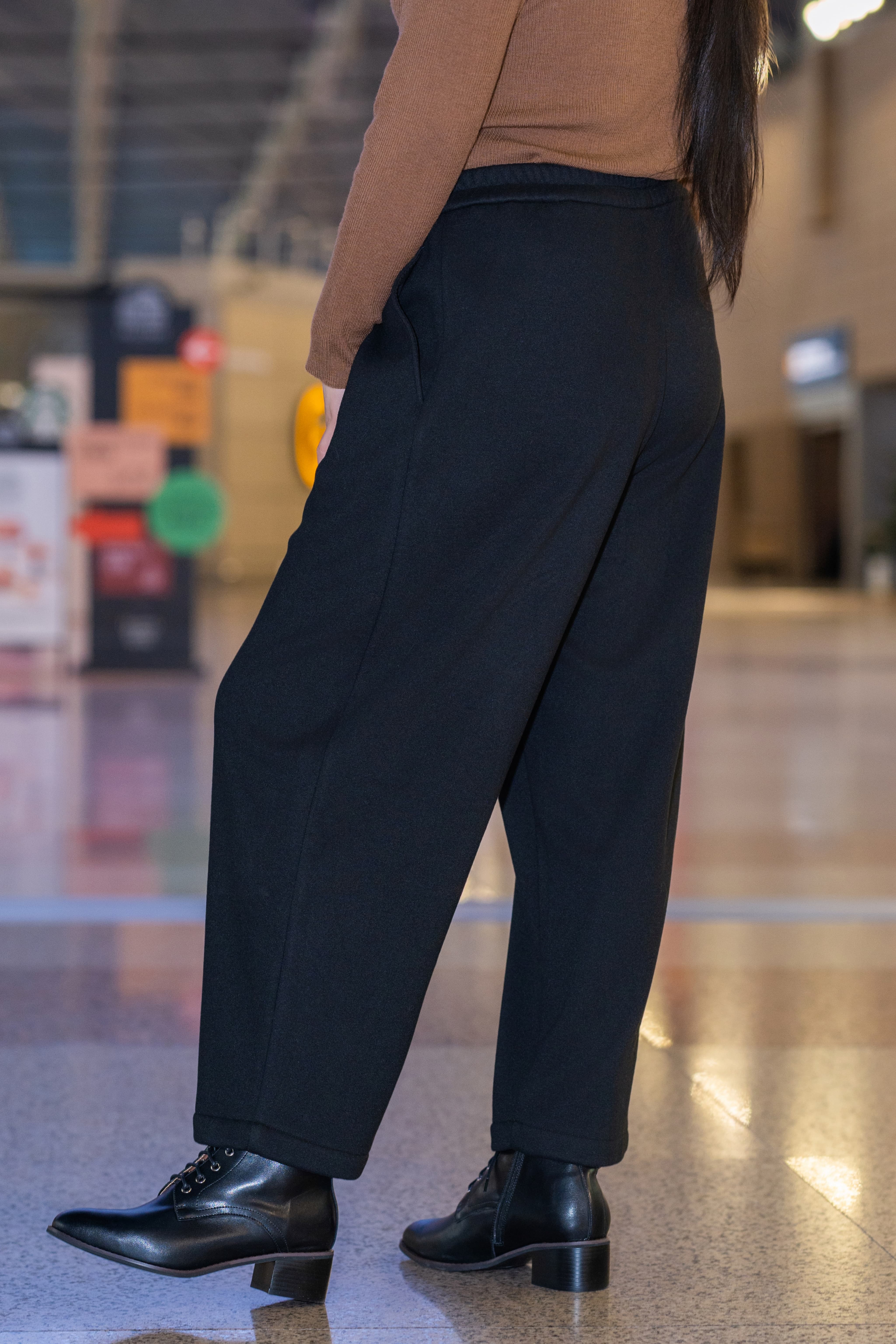 秒拍秒发!现货 !【🔥萝卜裤】黑白2色可选,松紧腰,垂坠廓形,内层细密短绒,保暖舒适亲肤!面层面料:67%聚酯纤维,14.3%粘纤,7.8%锦纶,7.6%腈纶,3.3%羊毛