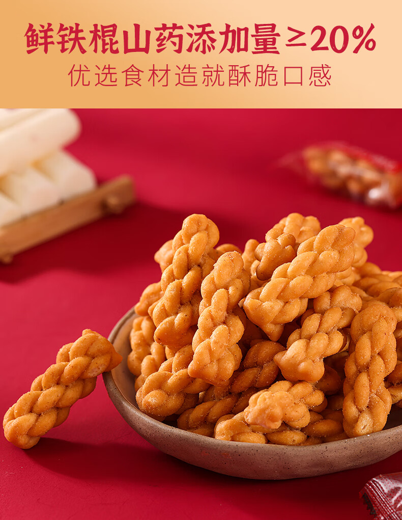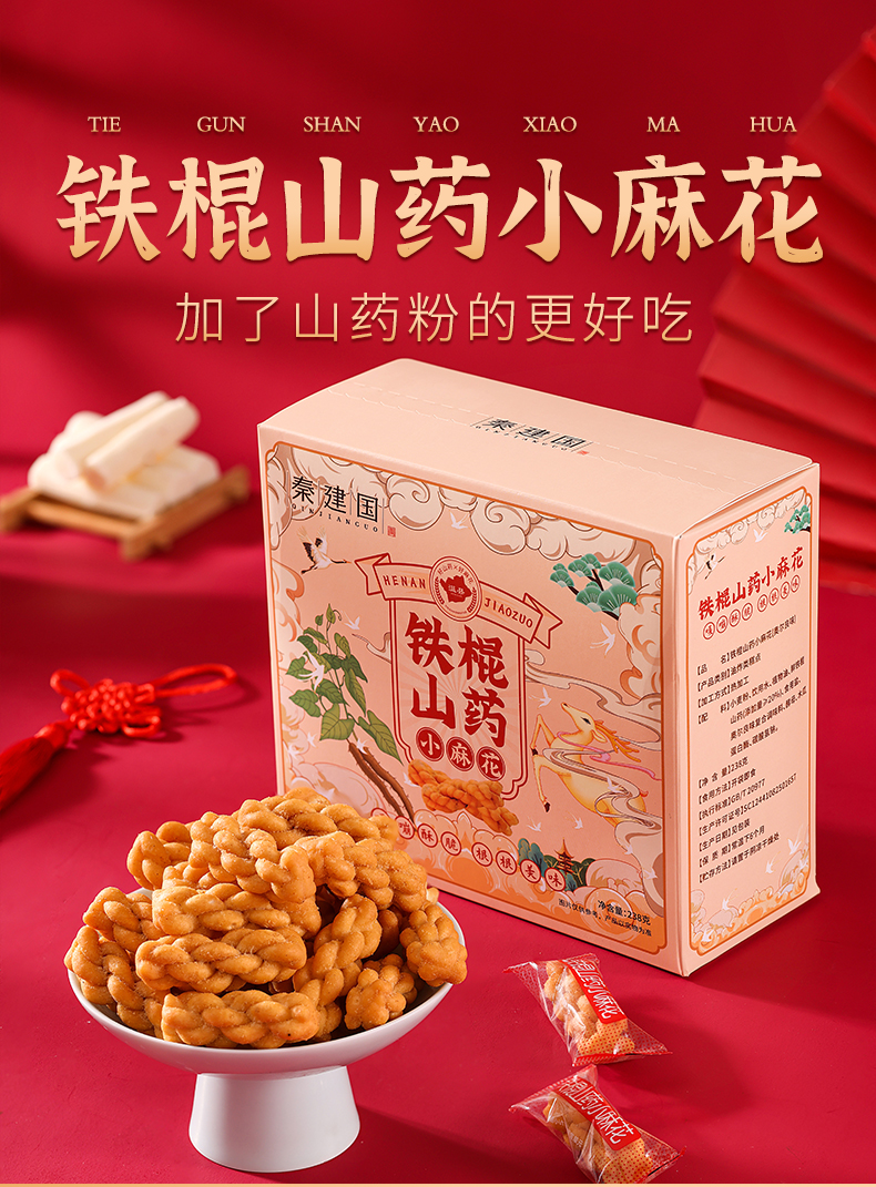 秦建国 铁棍山药香酥脆手工小麻花独立包装网红零食办公室解馋1288g 礼盒装