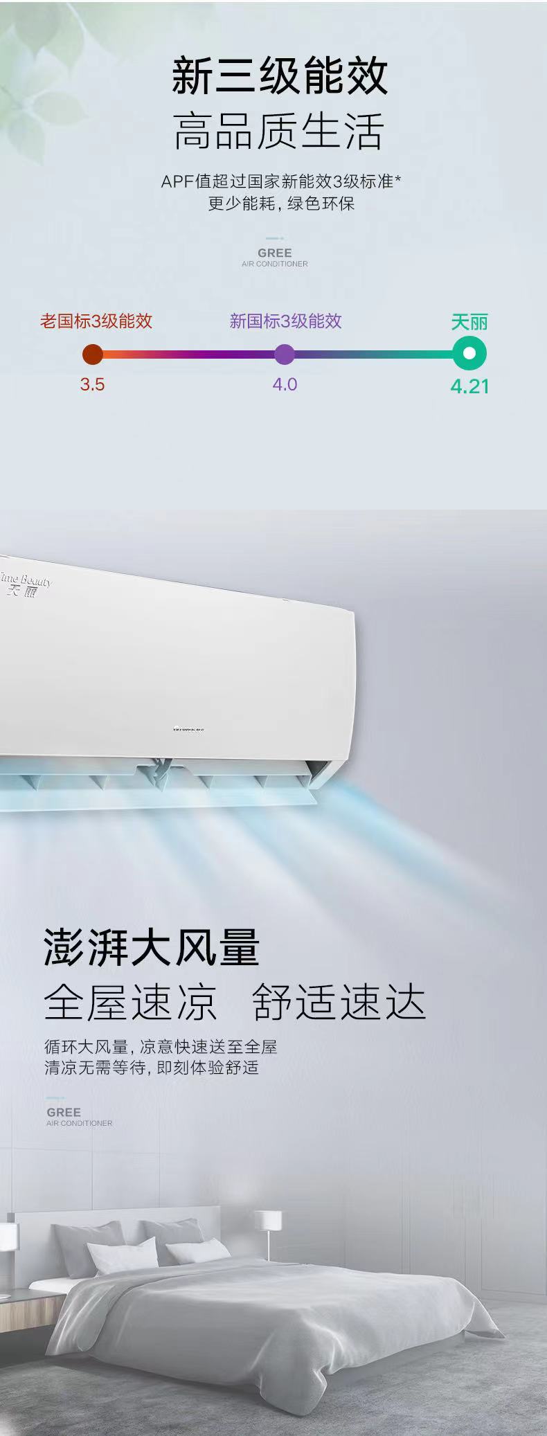 天丽变频冷暖正1.5匹3级能效挂机空调 KFR-35GW/(35530)FNhAk-B3(含管)顶(皓雪白)