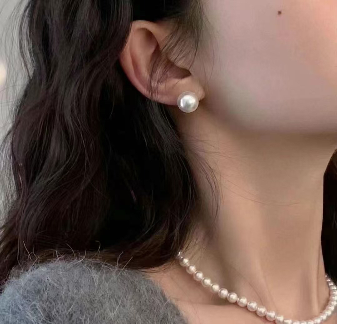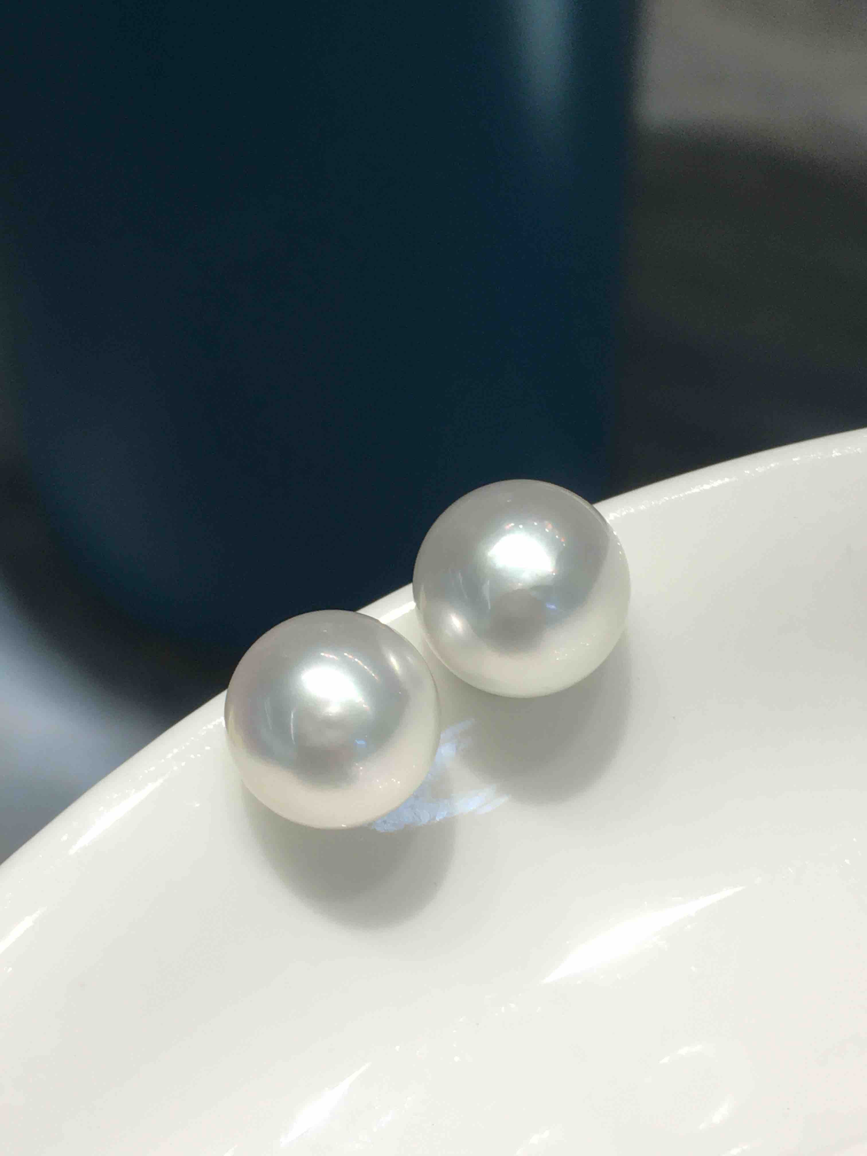 【私席真珠·新年盛宴】澳白小馒头 18k金镶嵌澳白珍珠耳针 10-11mm 正面无暇(2-3天工期)