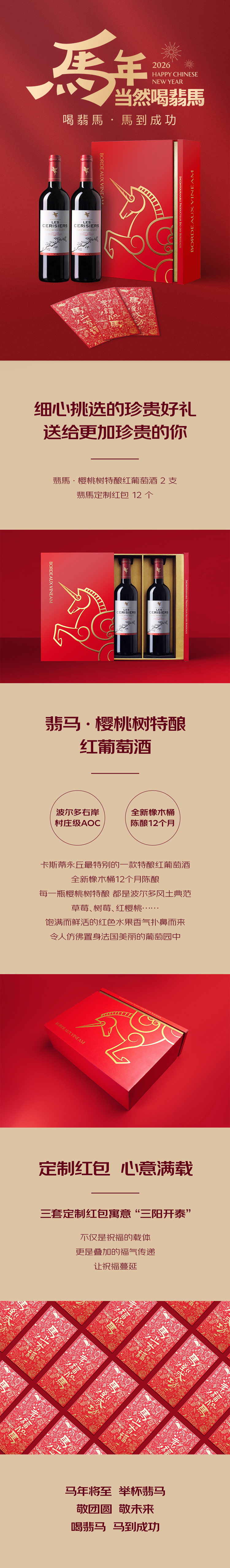 翡马*波尔多进口红葡萄酒2014年 13.5度 750ml*2 2026新年春节马跃福至礼盒