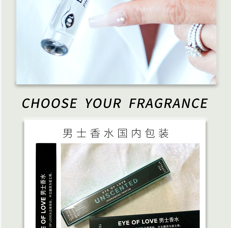 购前须知:本品是费洛蒙原液,只有轻微乙醇味道,可自由搭配香水使用,