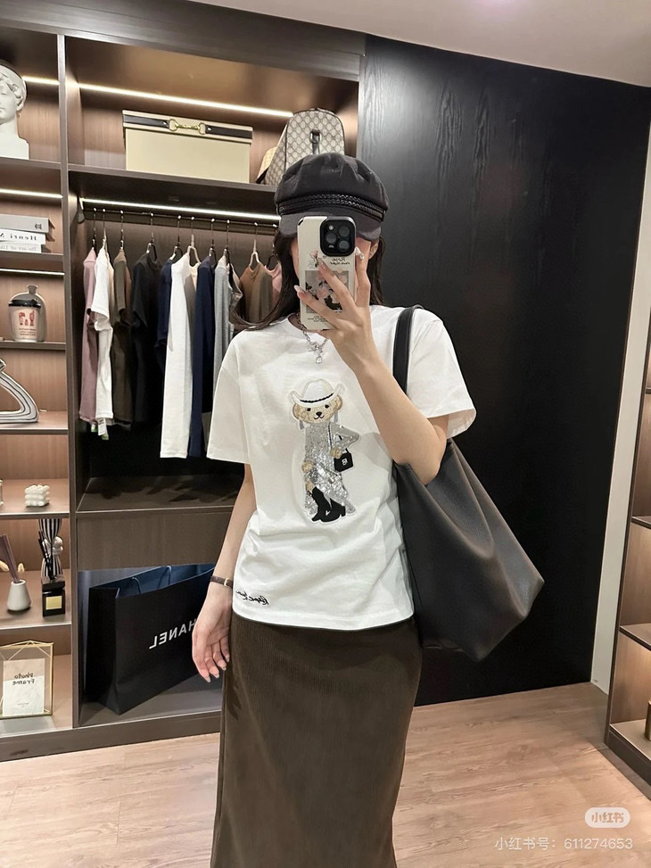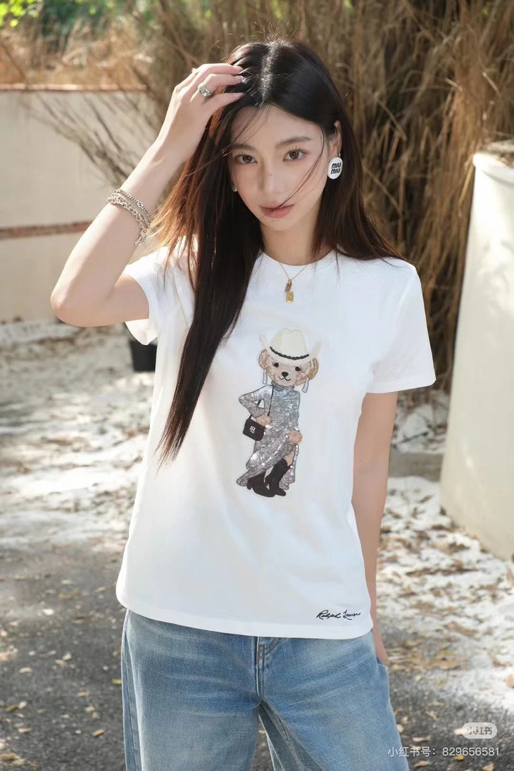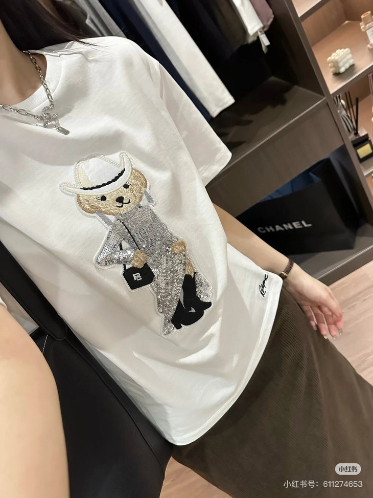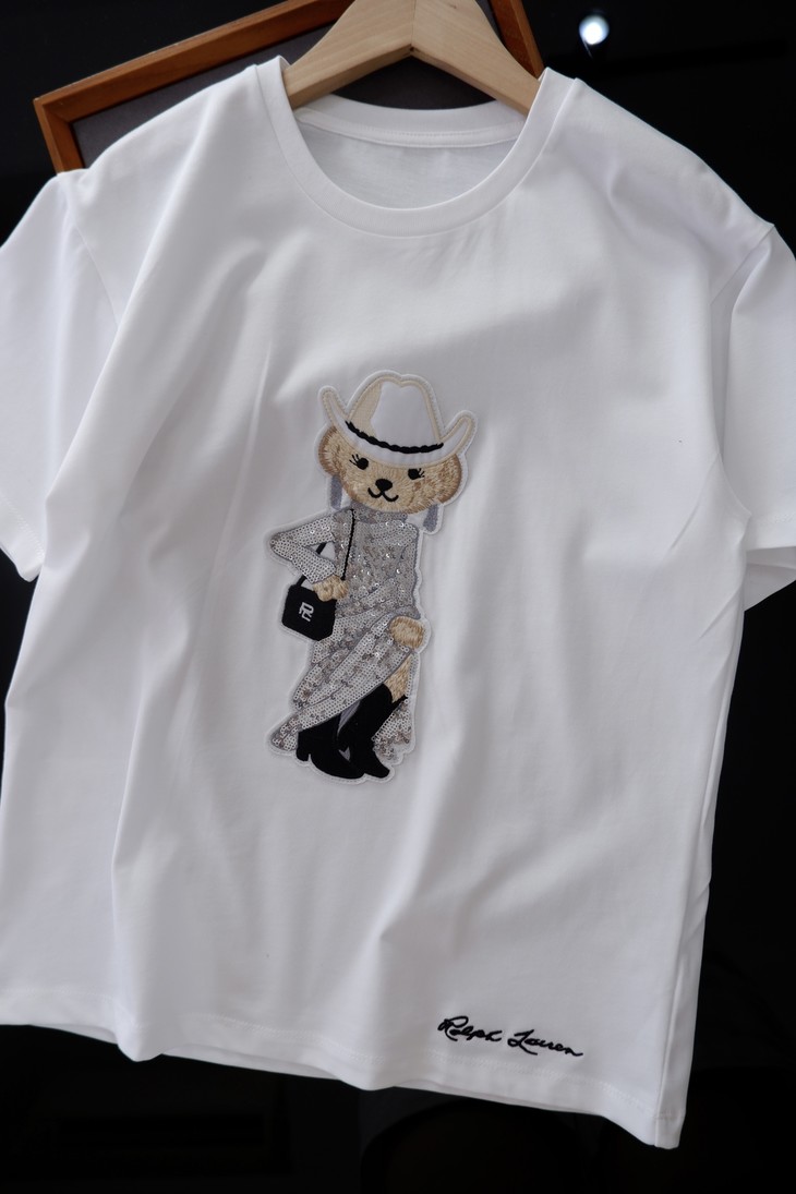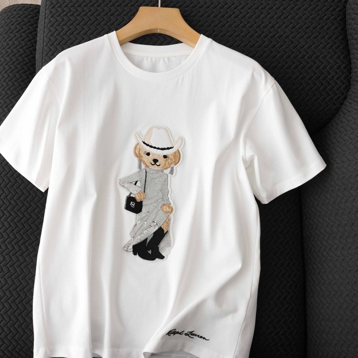 💰85元包邮 RL 拉夫 重工刺绣 晚礼服亮片小熊 短袖T恤