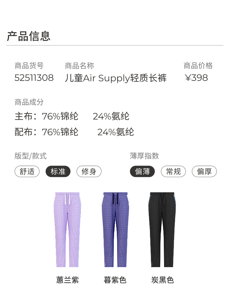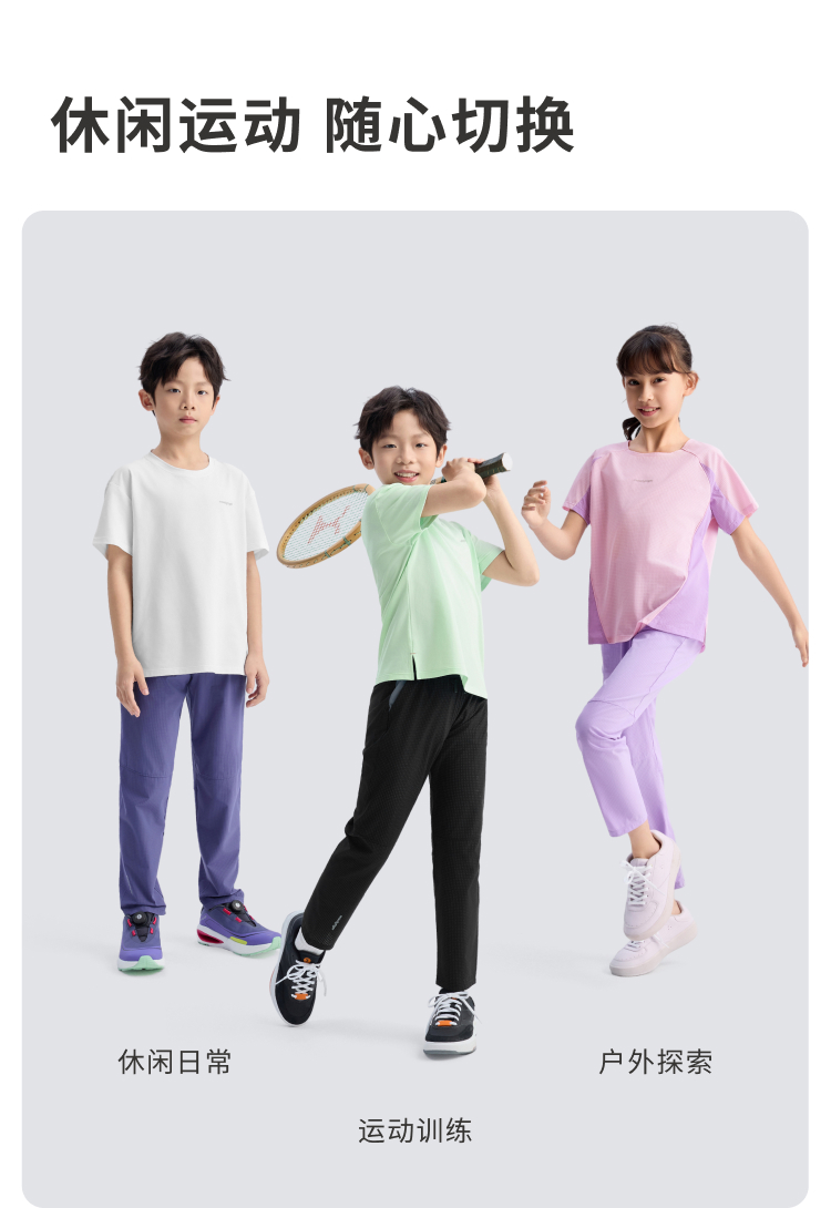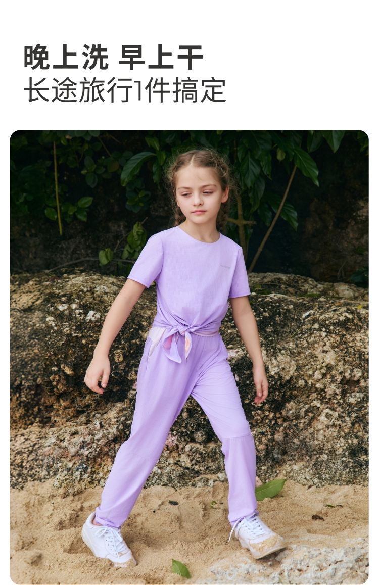 【DR暑假1】moodytiger儿童裤子25夏新男女童轻薄透气抽绳户外休闲长裤52511308