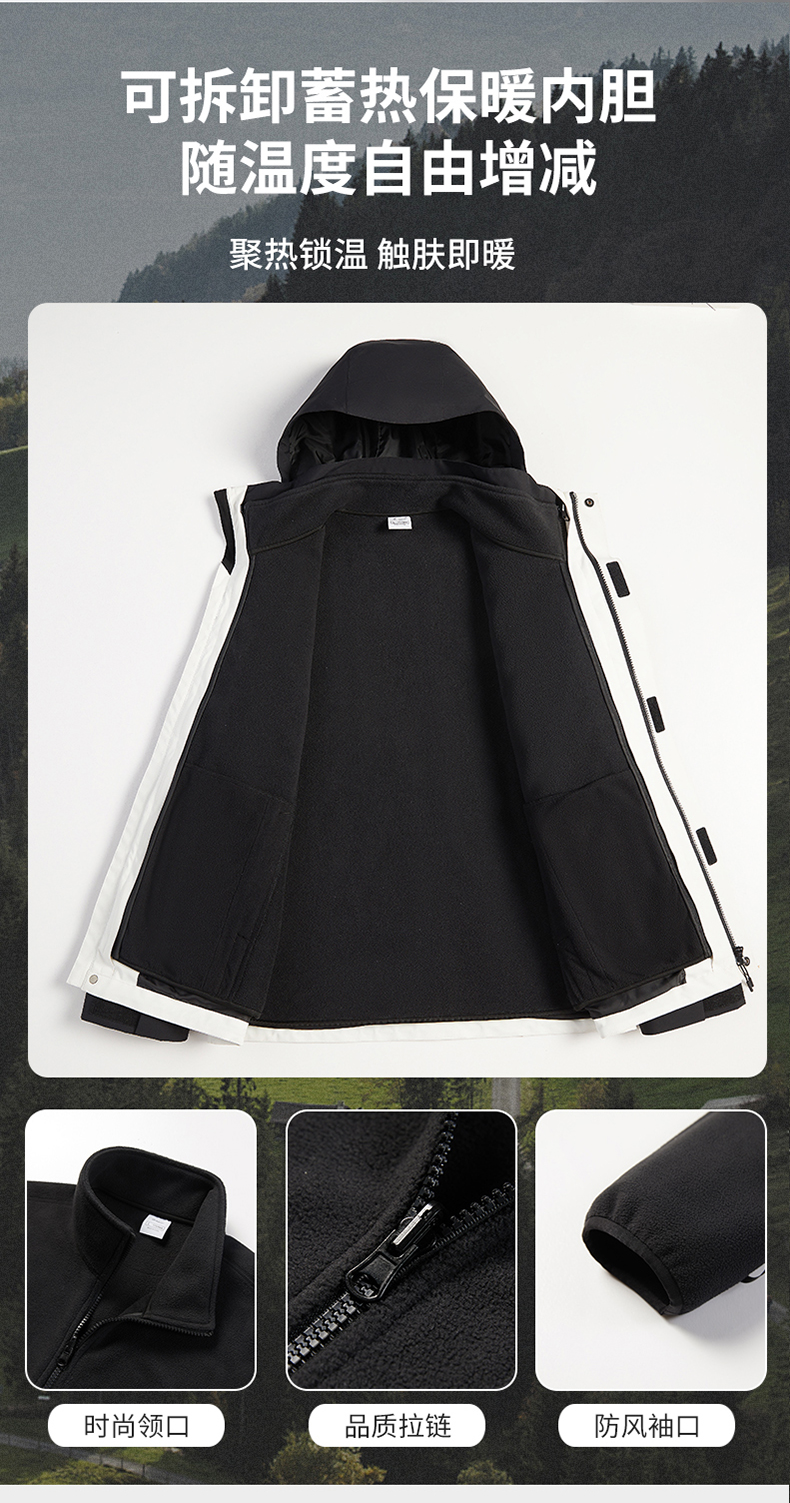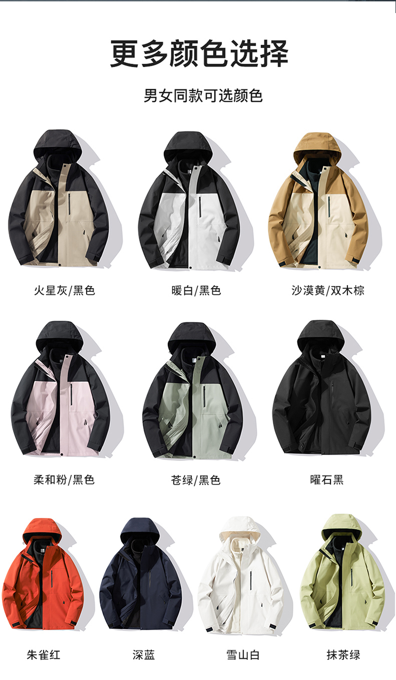 【明天中午12:00截单下架】新款升级可拆卸三合一冲锋衣 男女款可选 防风防水外套,防水指数10000+ 冬季加绒加厚 透湿指数7000+多种颜色,纯色+拼接,可任选!