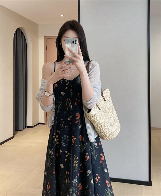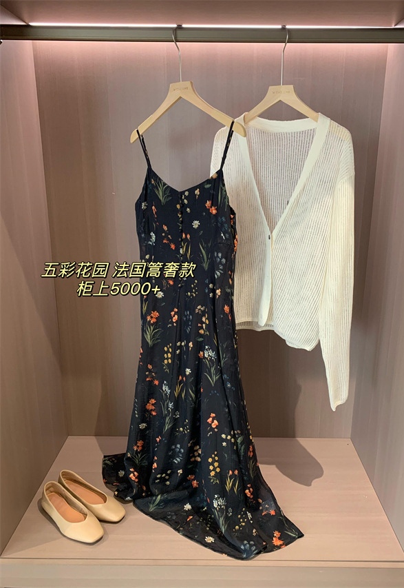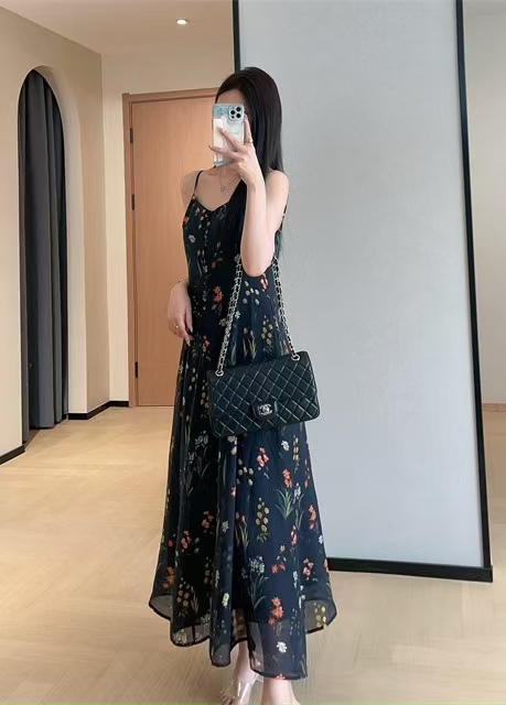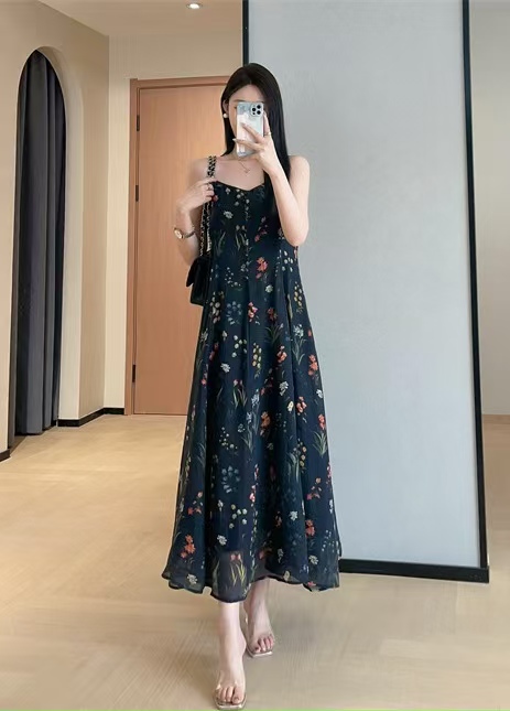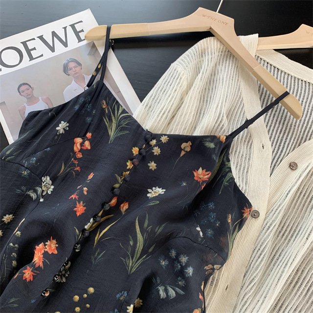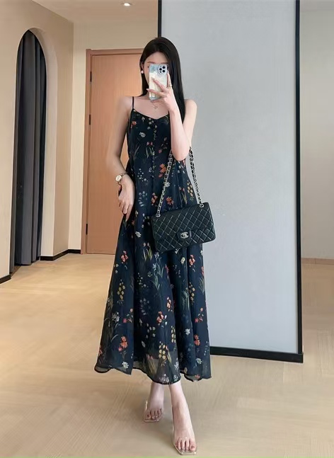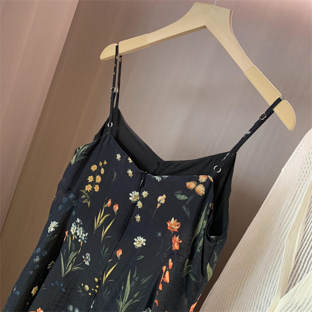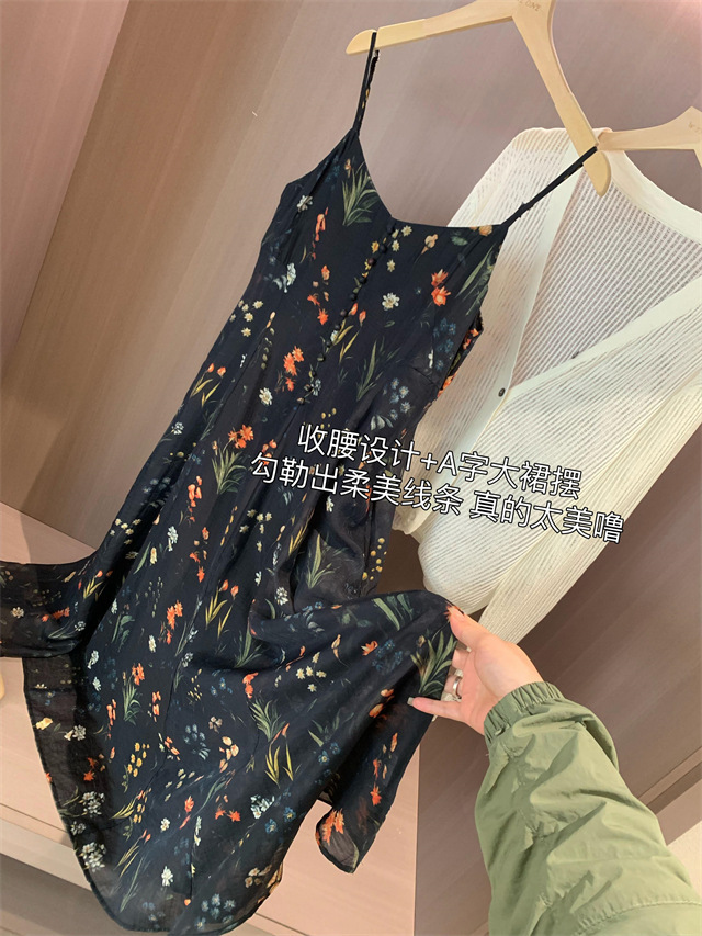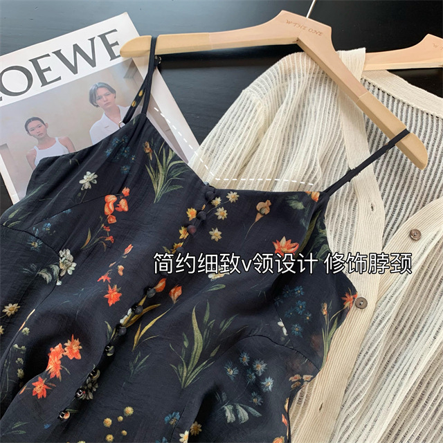 气质撩人衬肤白的吊带天丝连衣裙,浪漫印花点缀在裙身上花案精致淡雅文艺,