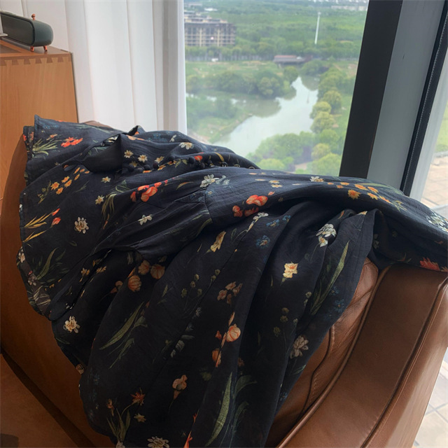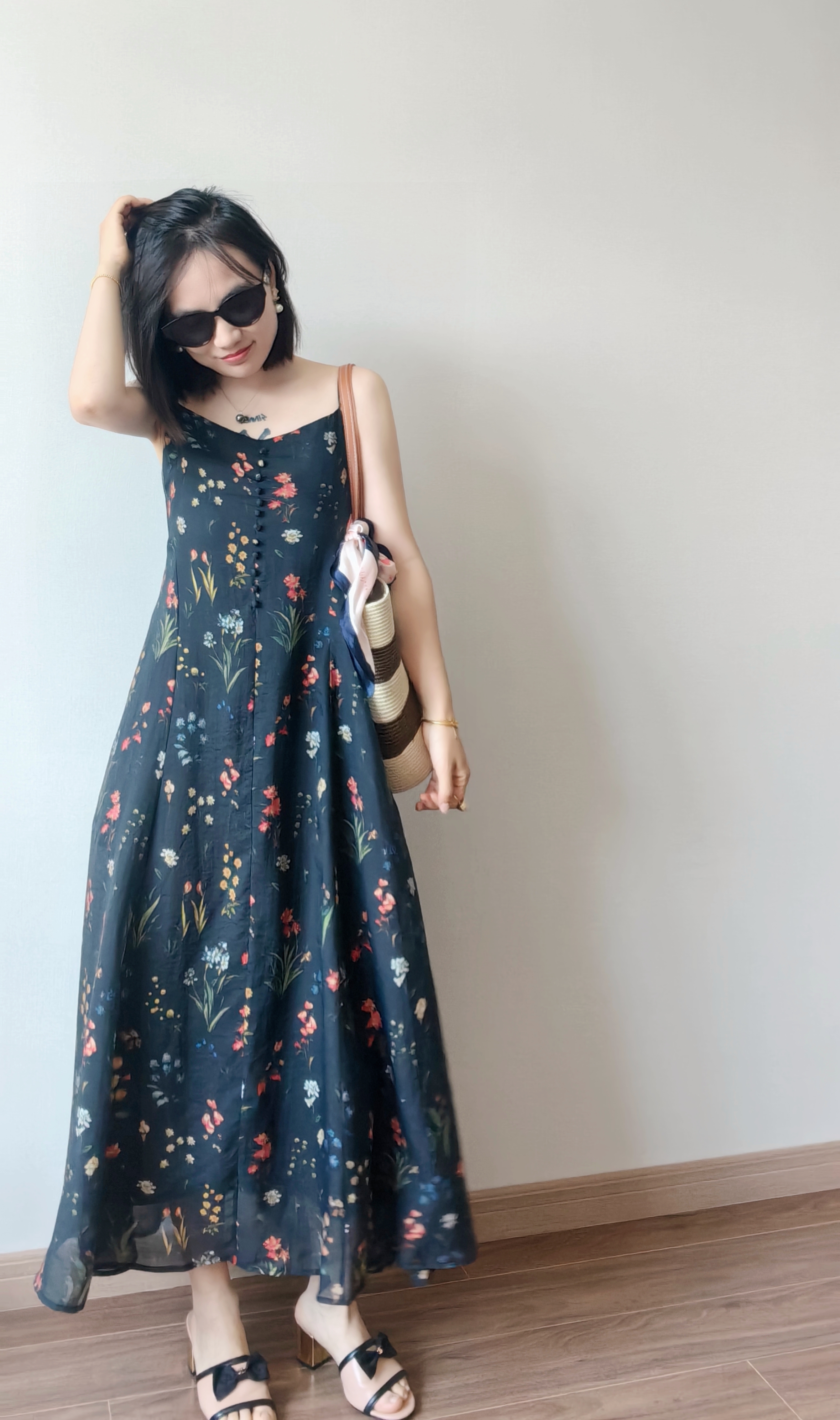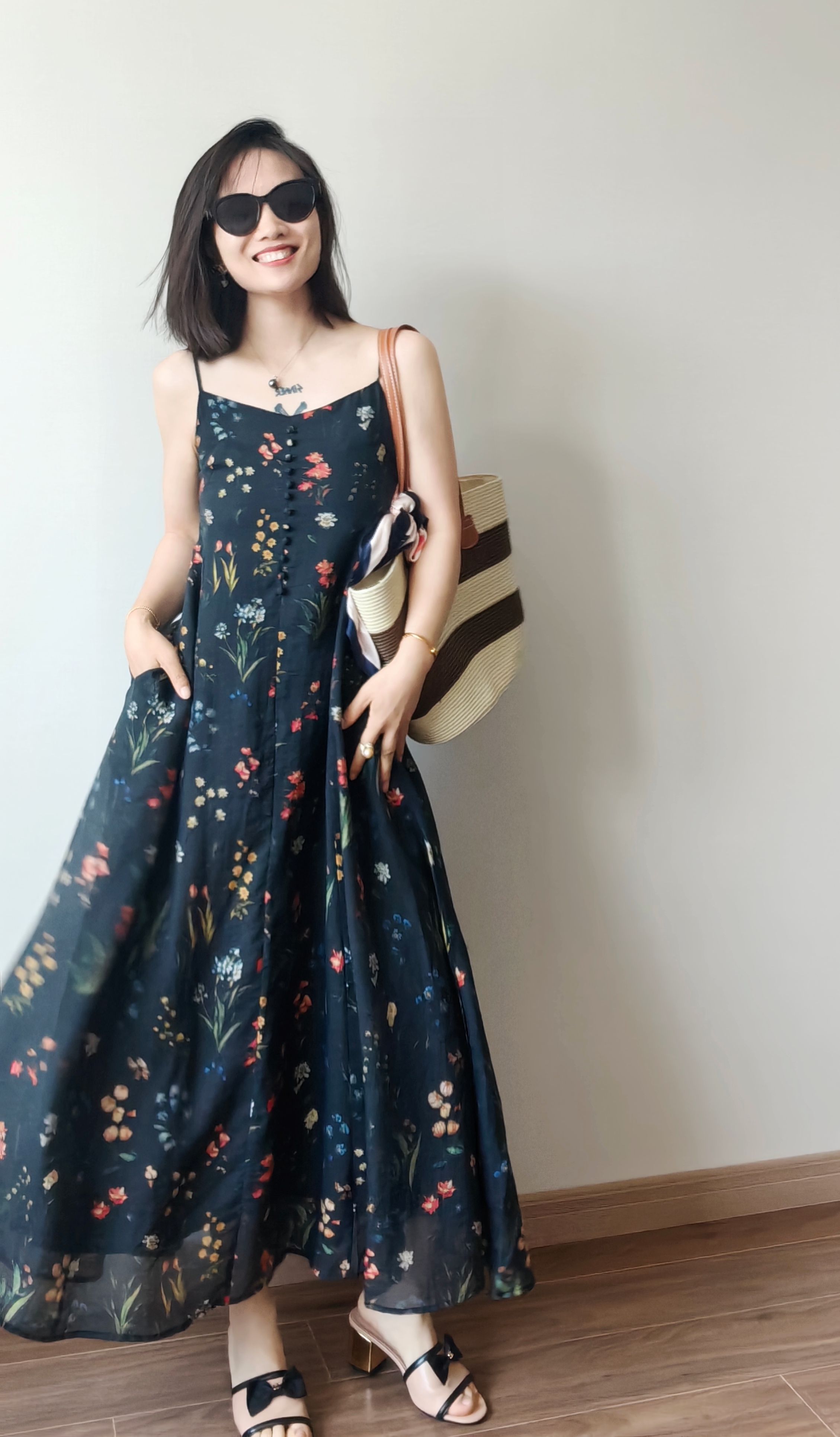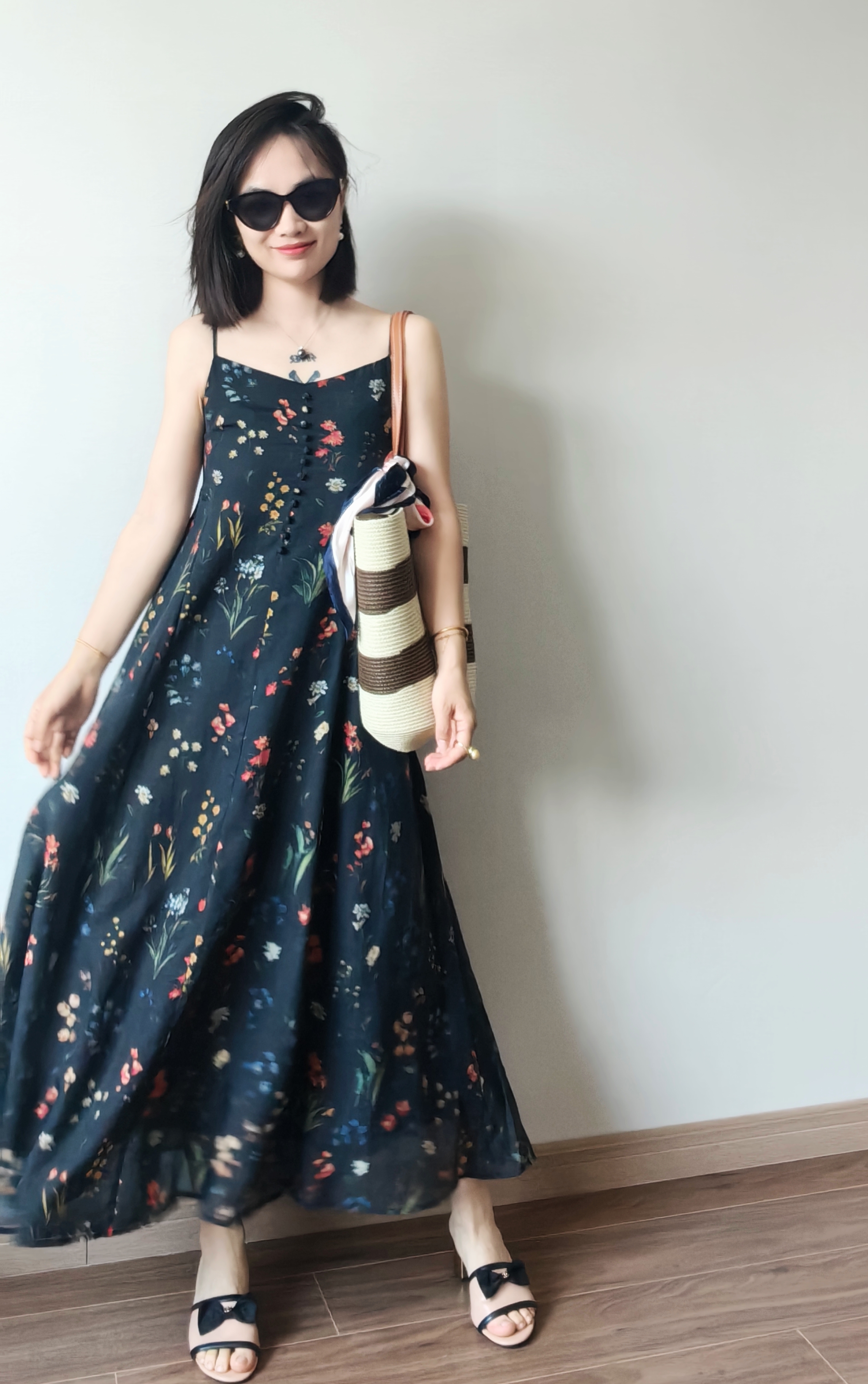 气质撩人衬肤白的吊带天丝连衣裙,浪漫印花点缀在裙身上花案精致淡雅文艺,