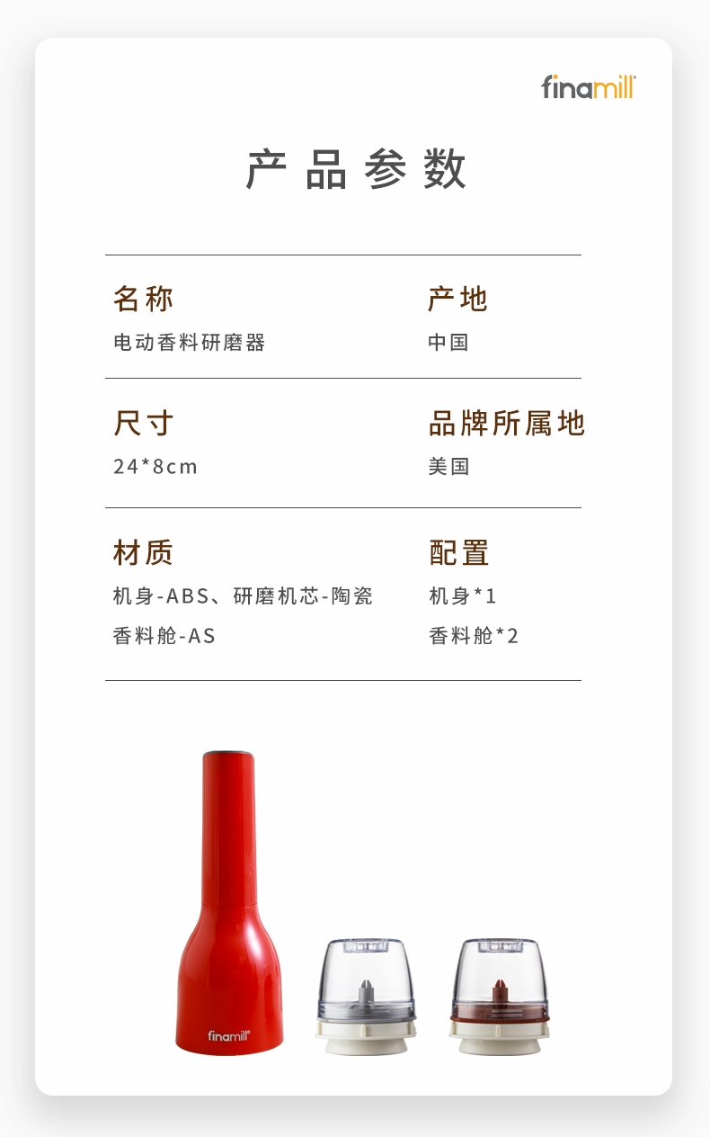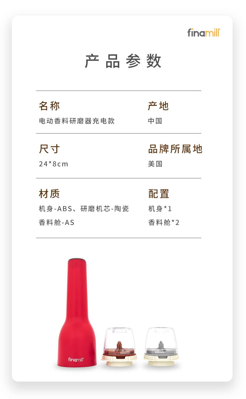 【中餐厅大厨小林哥推荐】姜妍同款Finamill 快卡式电动研磨器