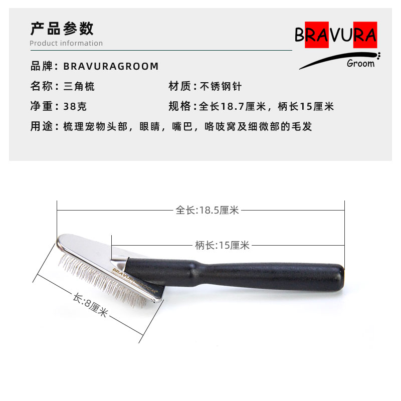 宠物黑柄针梳 三角梳 RA221 RA222 意大利BRAVURAGROOM品牌