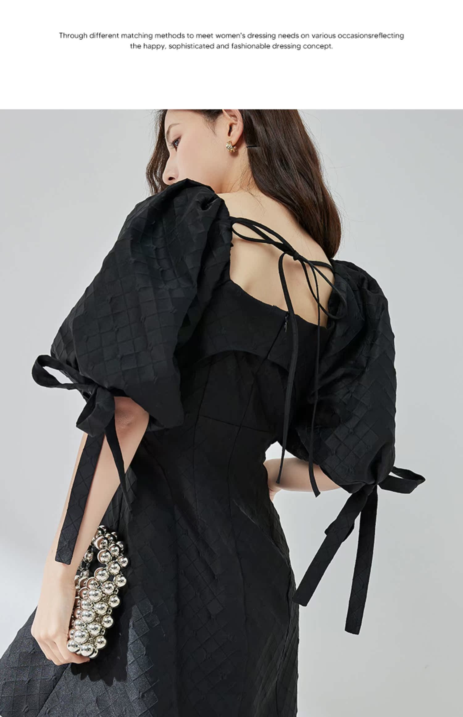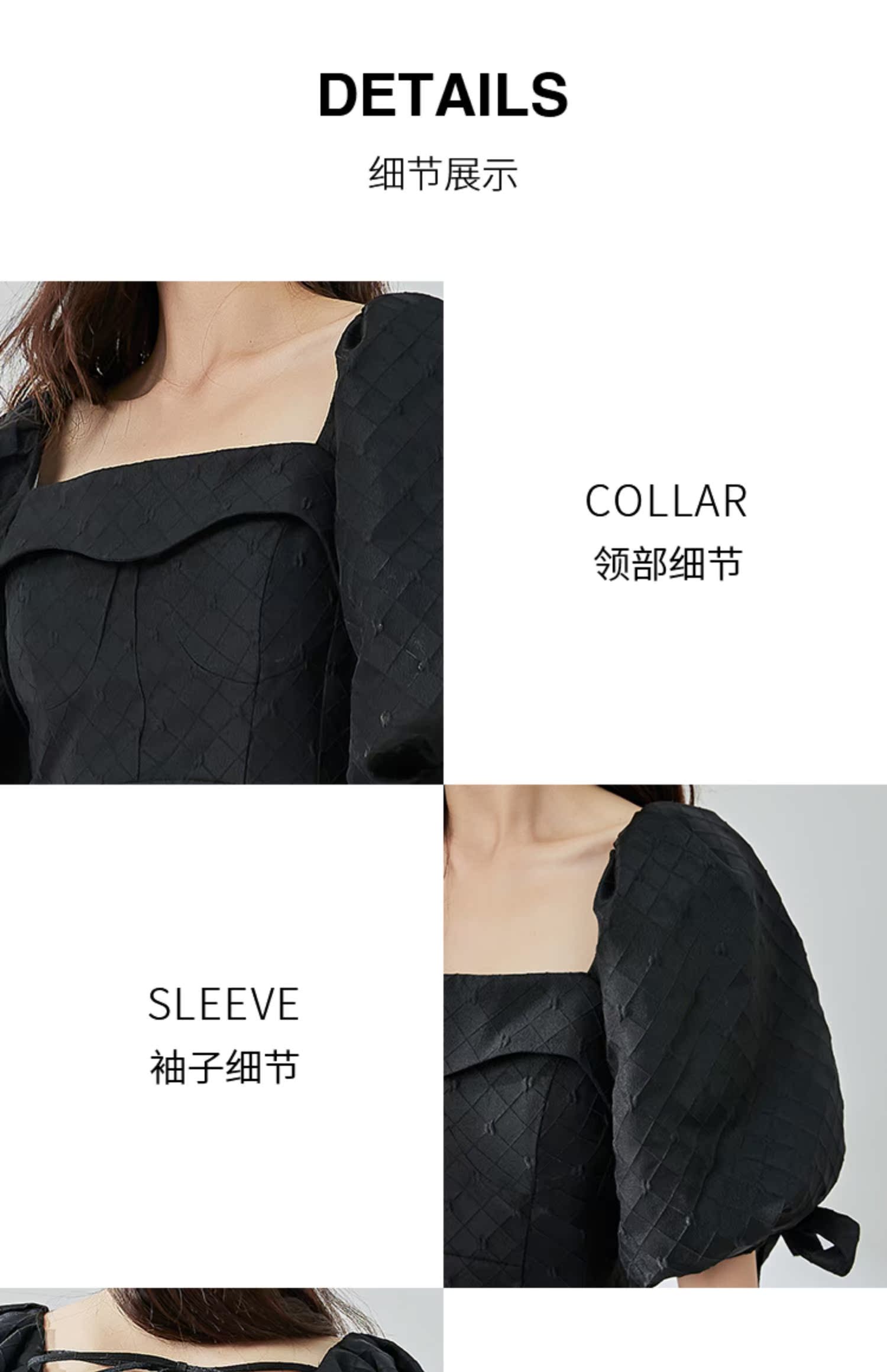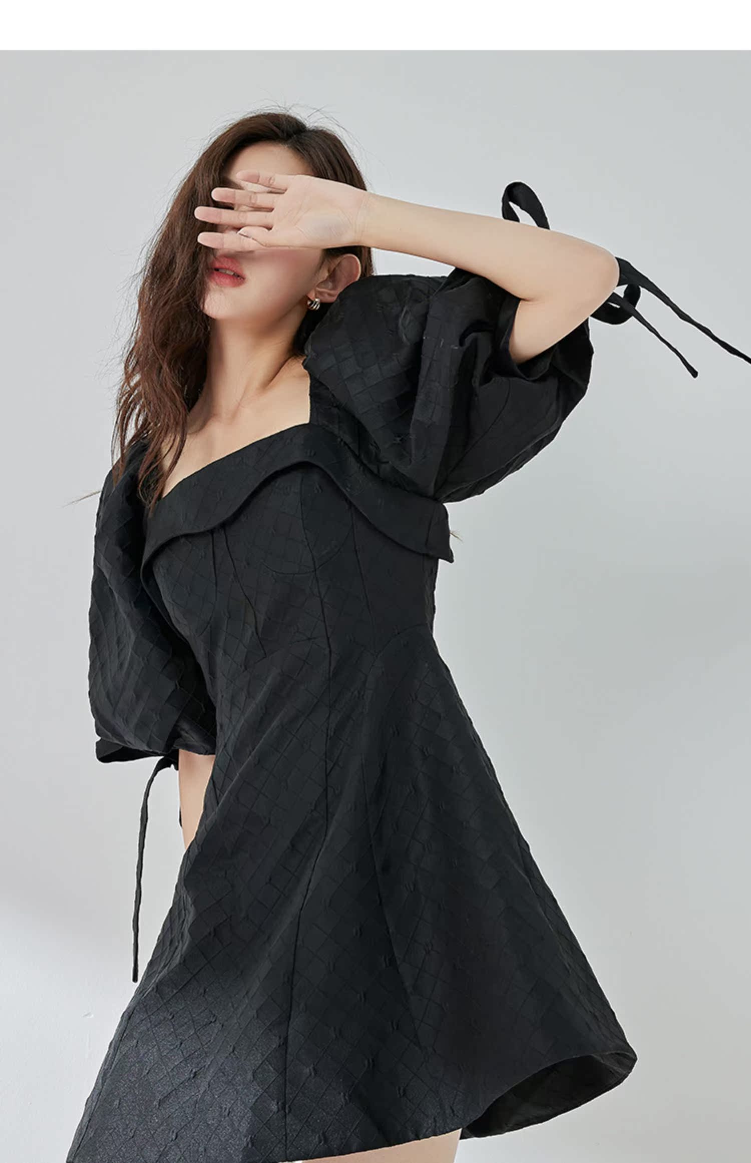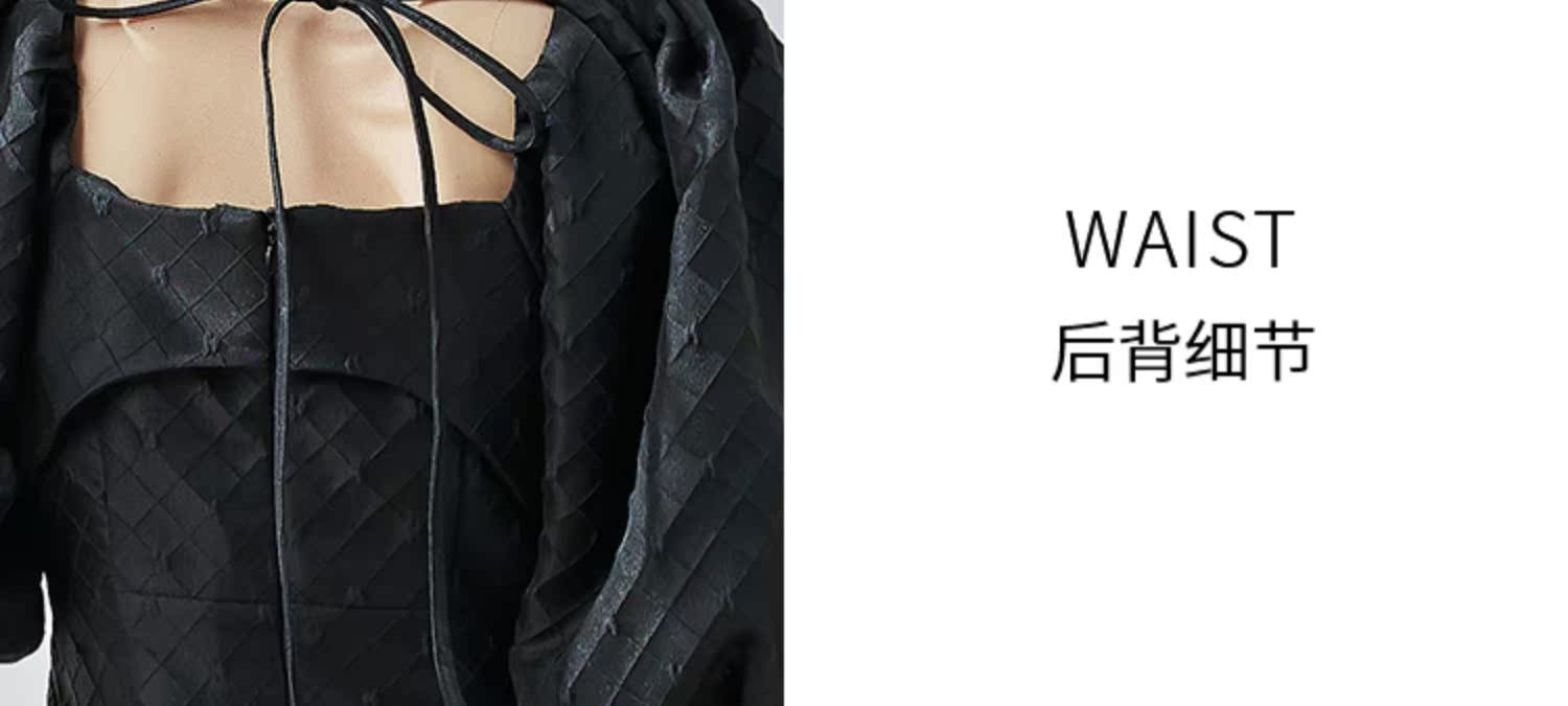 NUTS夏季新品黑色时尚优雅气质方领短袖蝴蝶结显瘦连衣裙324101141B