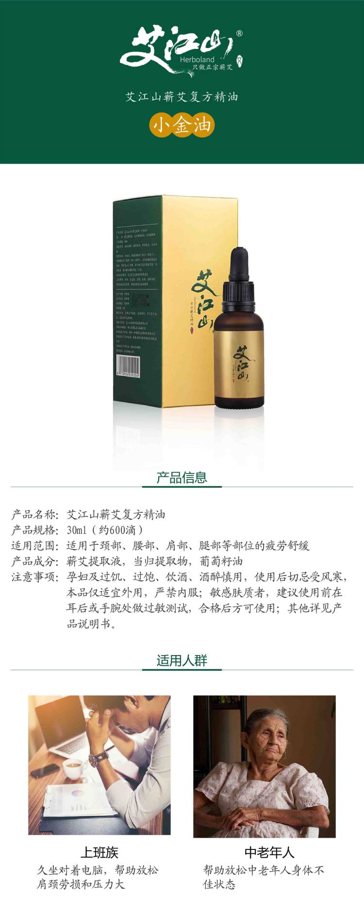 艾江山 小金油 蕲艾古方养生精油 经典古法 地道草本 (30ml小金油)