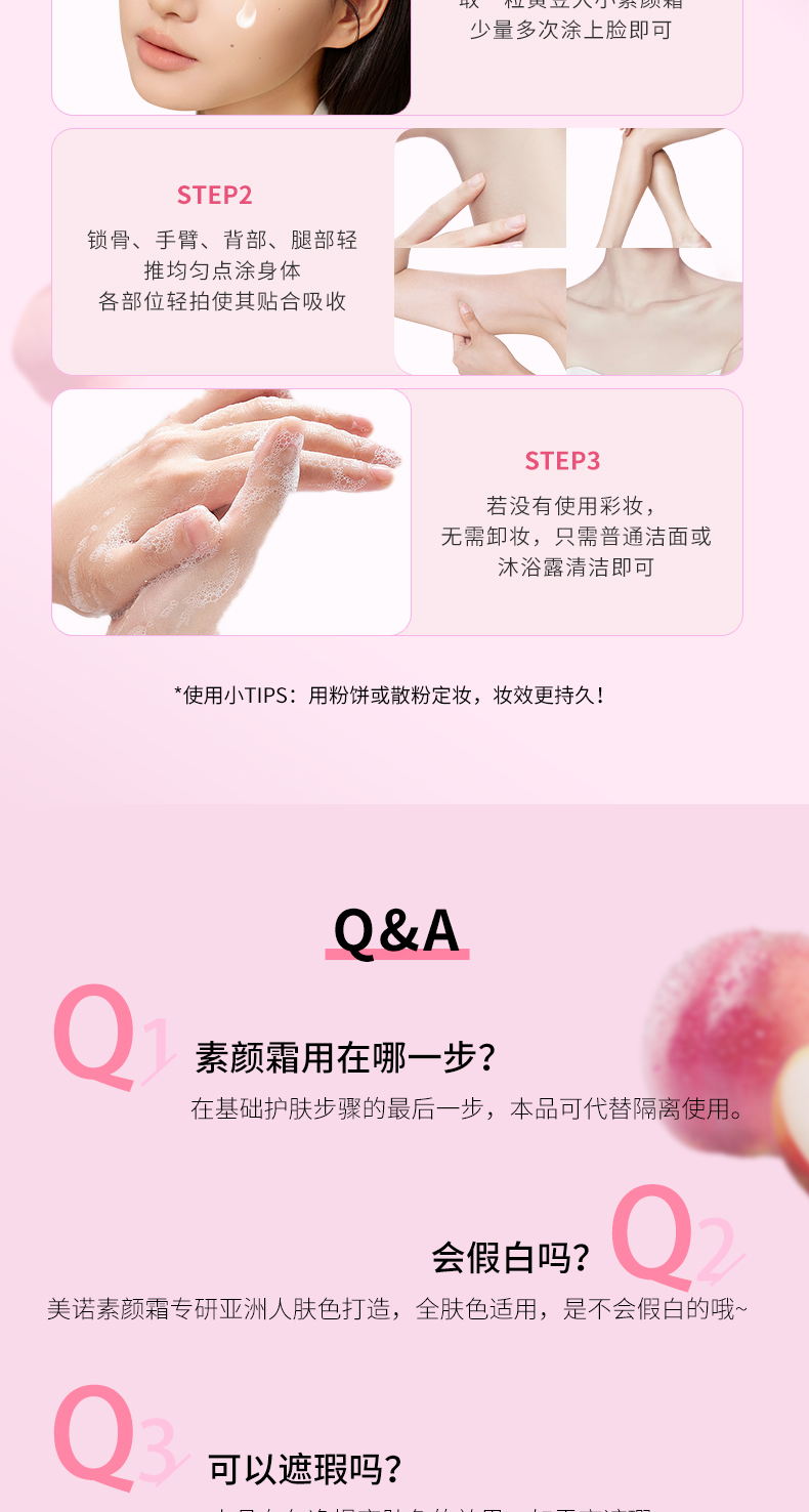 【MENOW】美诺桃奶芙素颜霜 懒人快速上妆隐匿毛孔提亮肤色