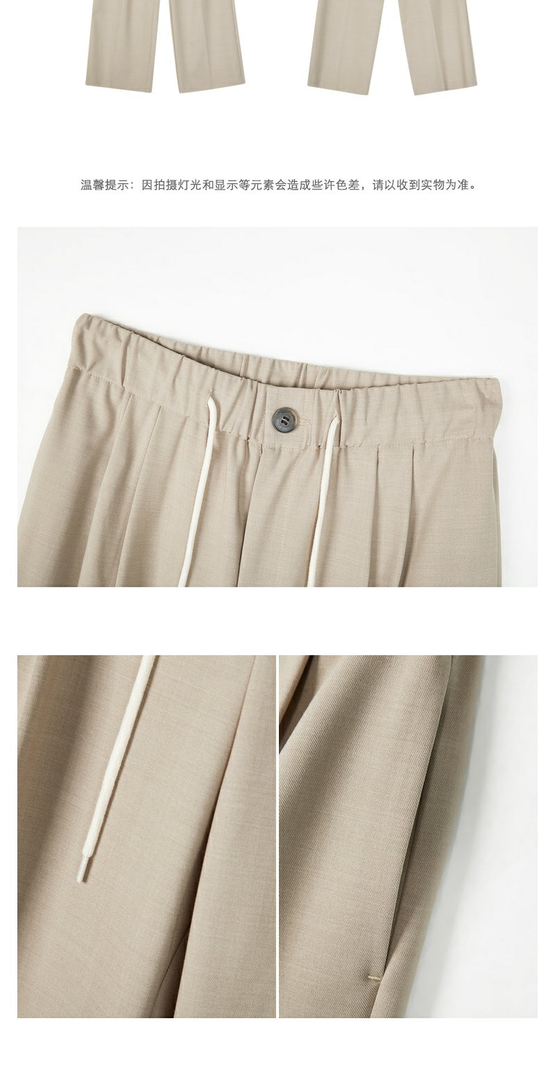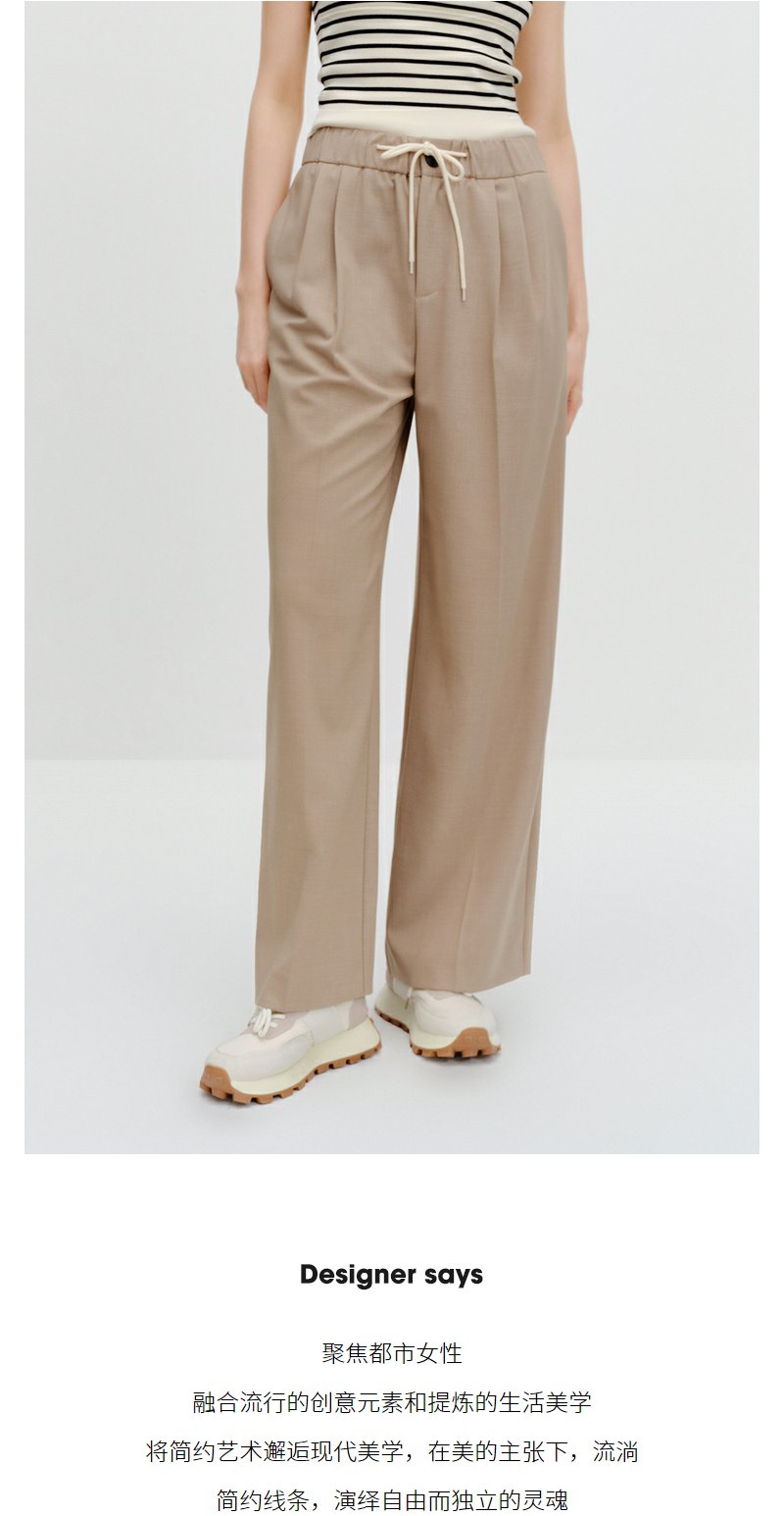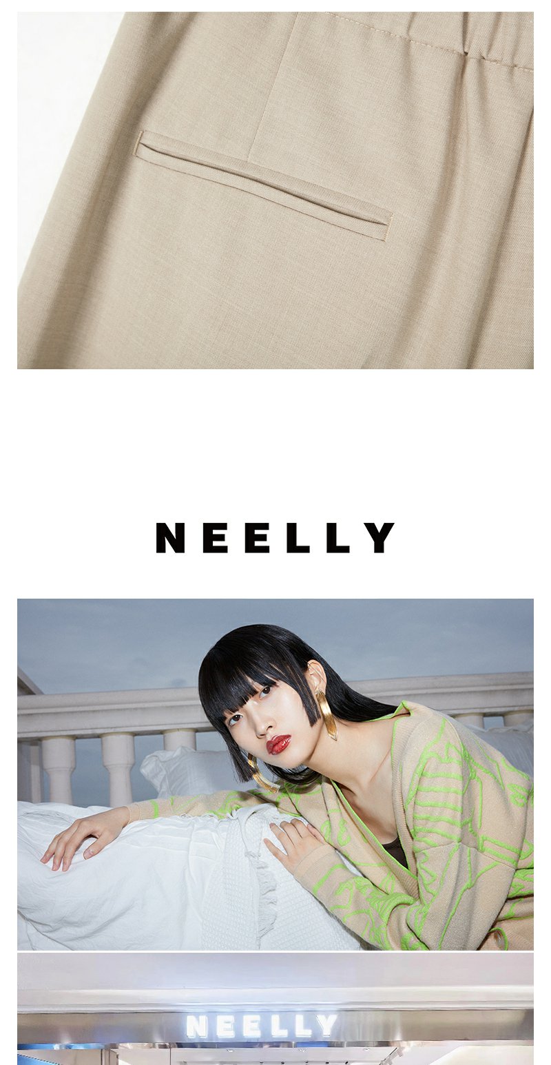 NEELLY纳俪商场同款纯色休闲裤早秋新款松紧腰通勤垂感阔腿裤长裤N23081H01090