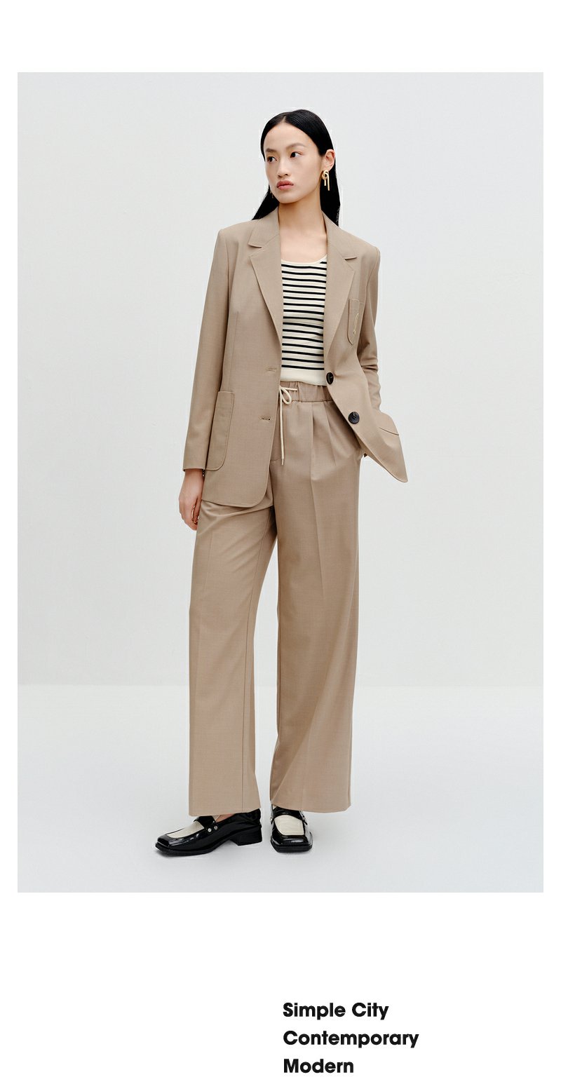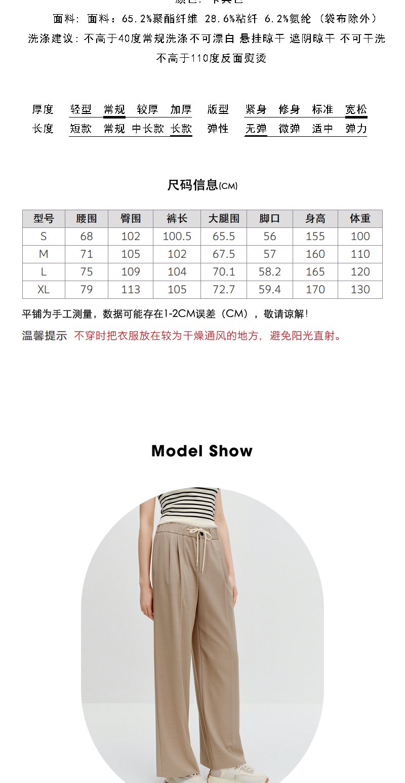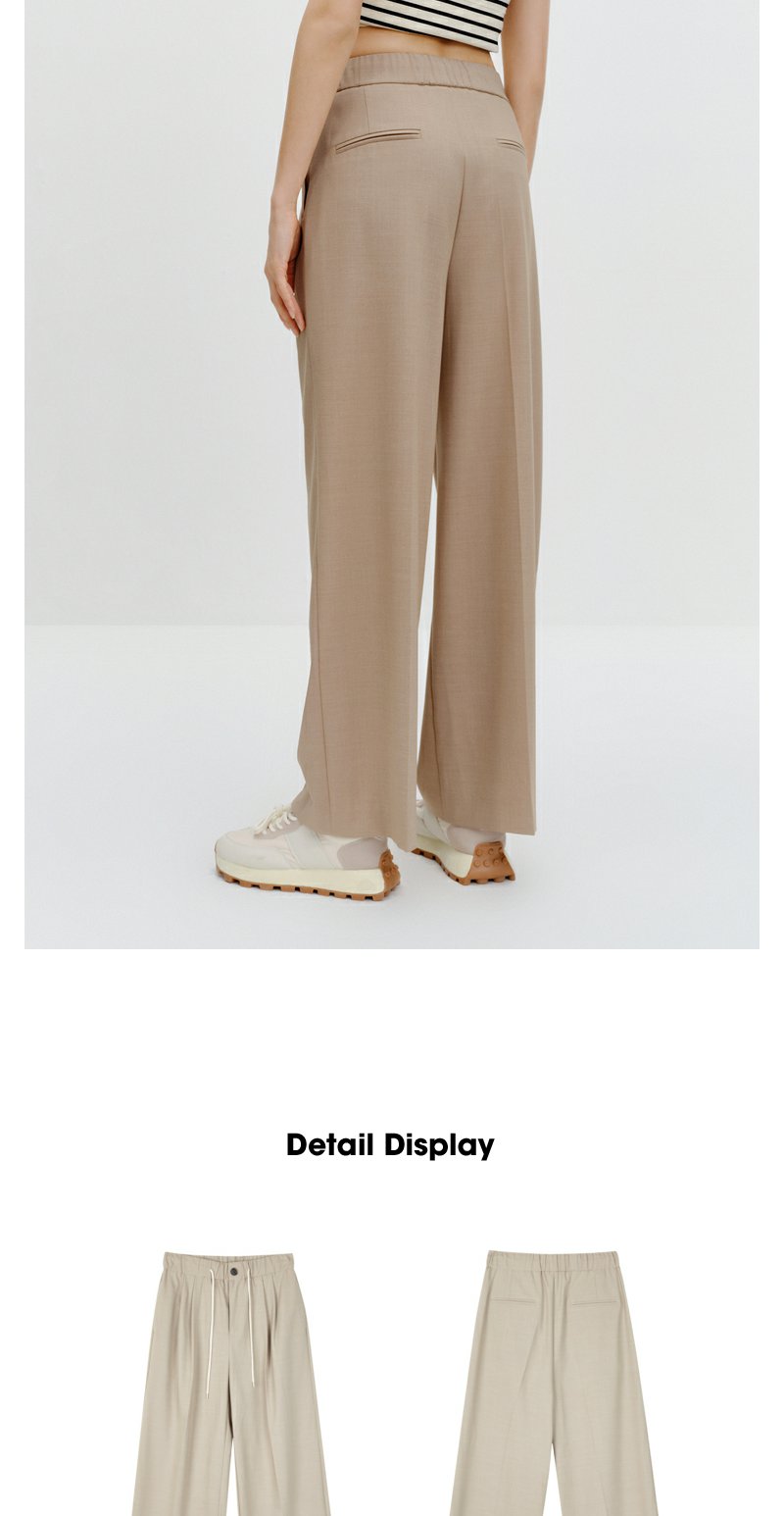 NEELLY纳俪商场同款纯色休闲裤早秋新款松紧腰通勤垂感阔腿裤长裤N23081H01090