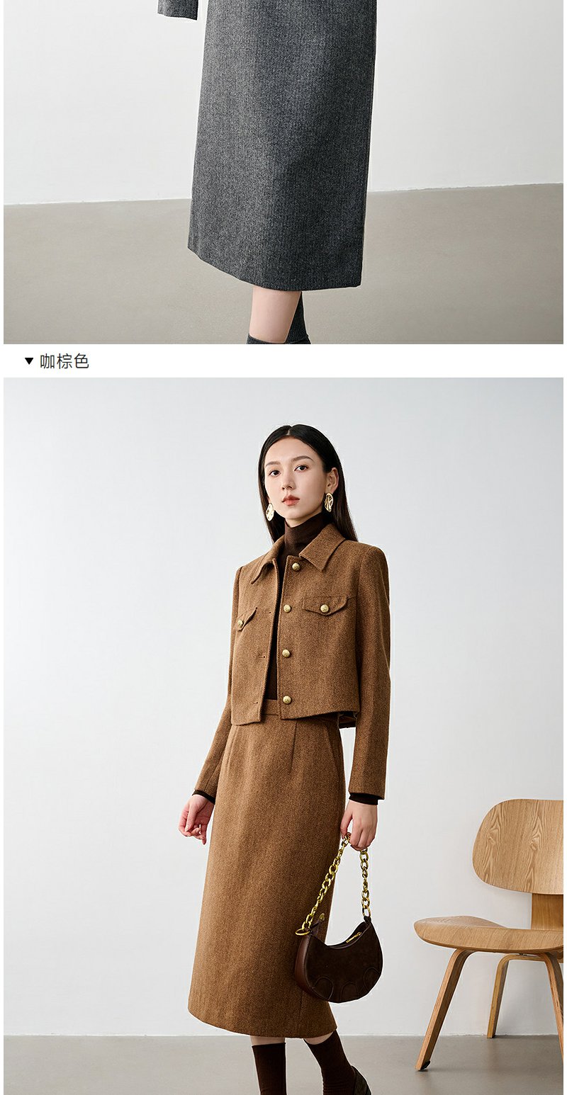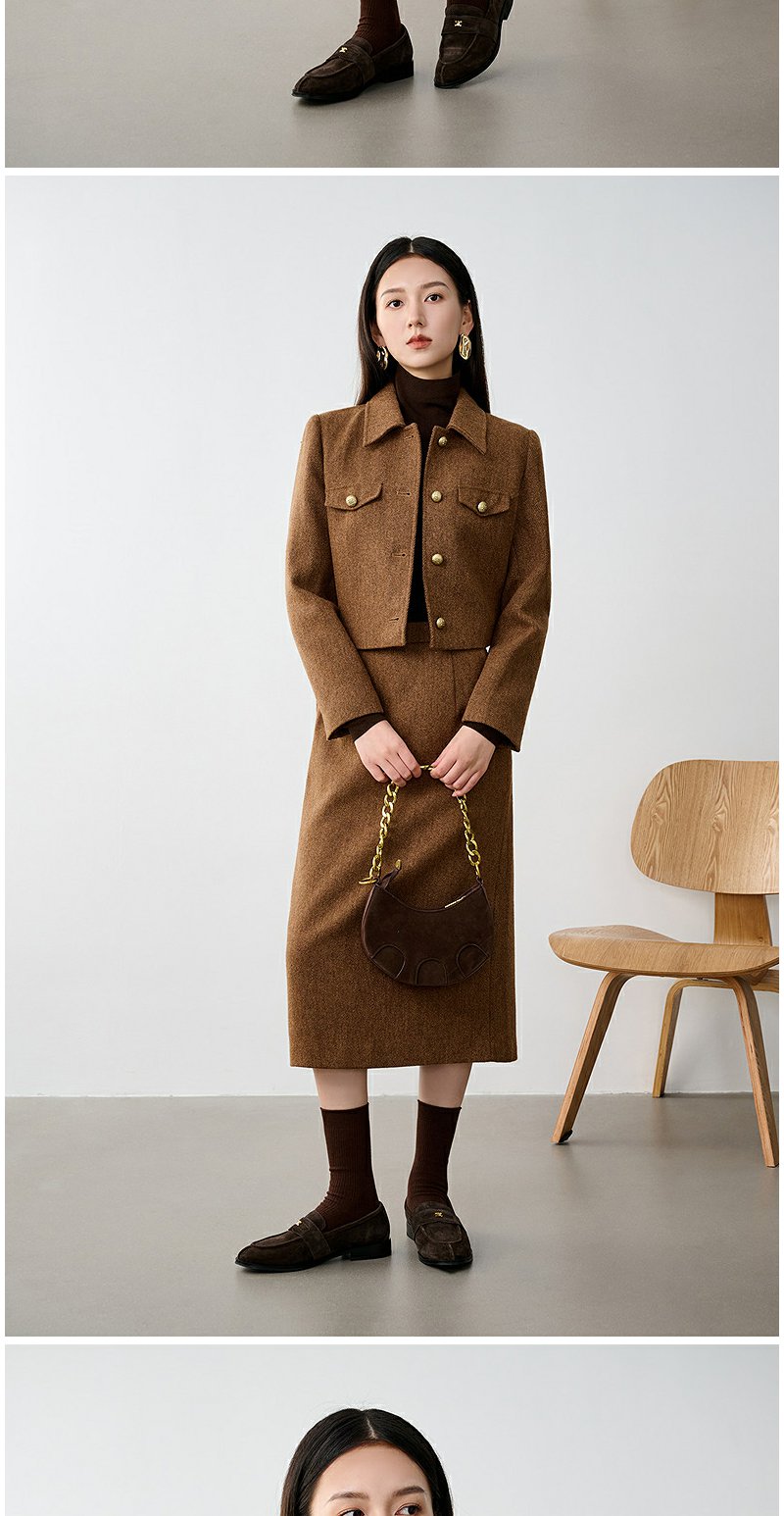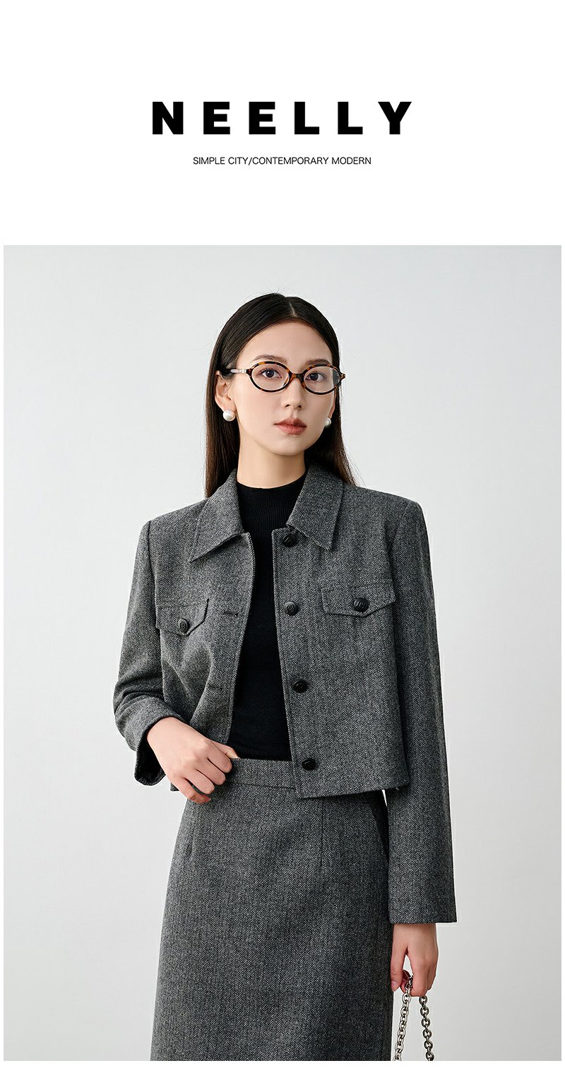 NEELLY纳俪商场同款冬新款小香风正肩显瘦短外套女绵羊毛保暖上衣N25104C04503
