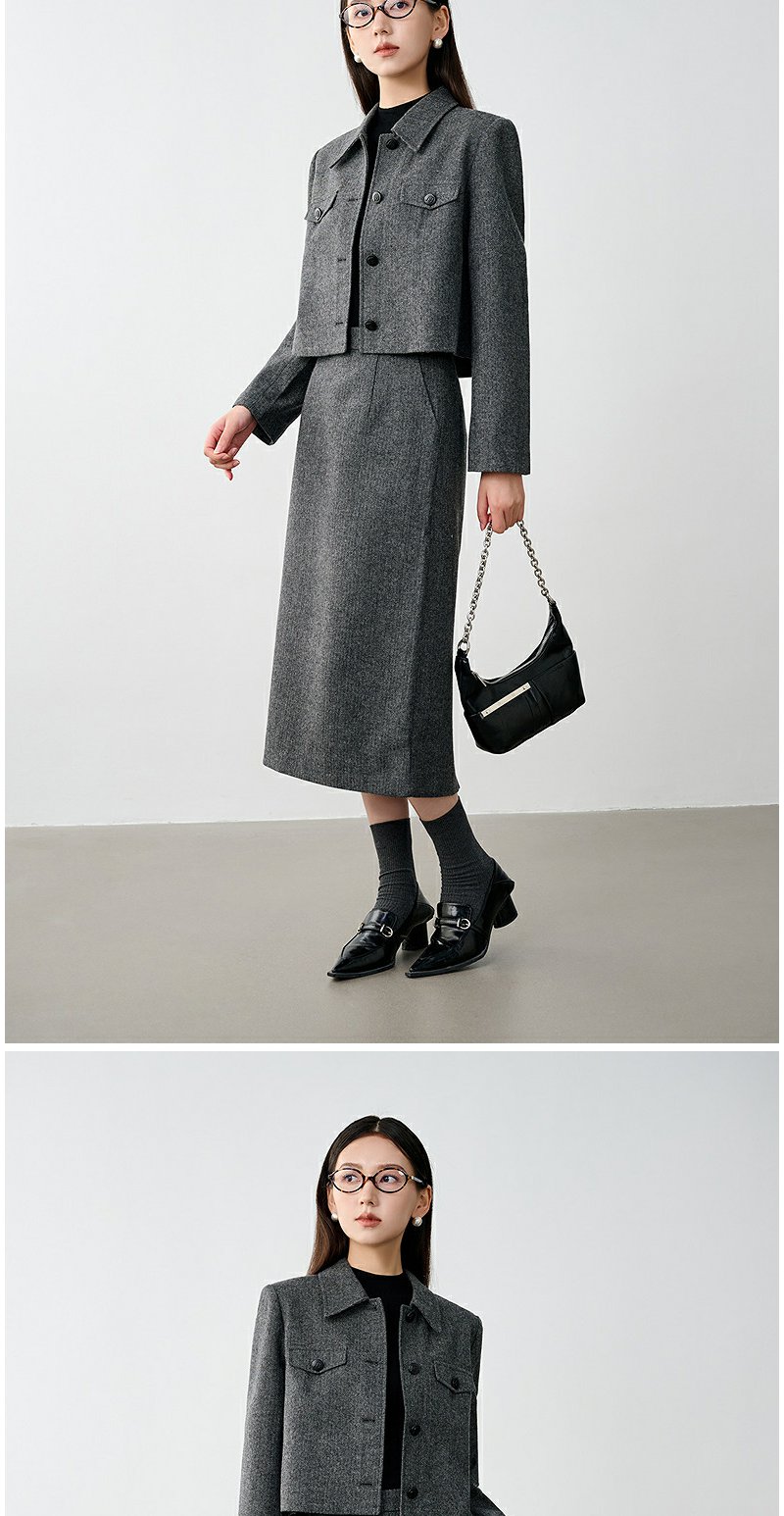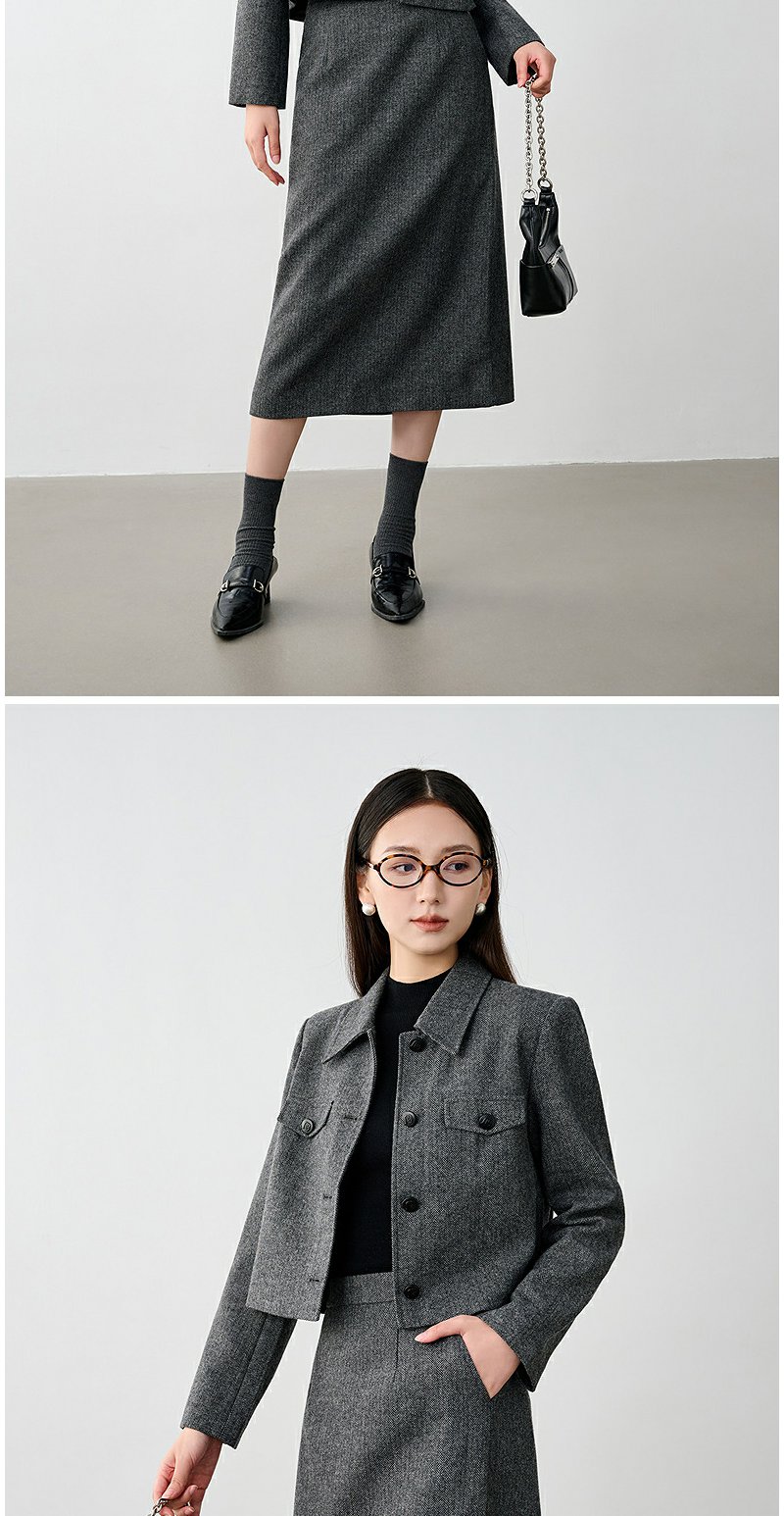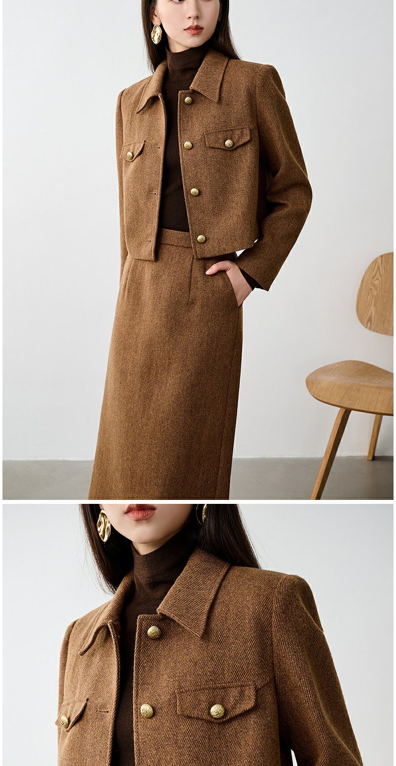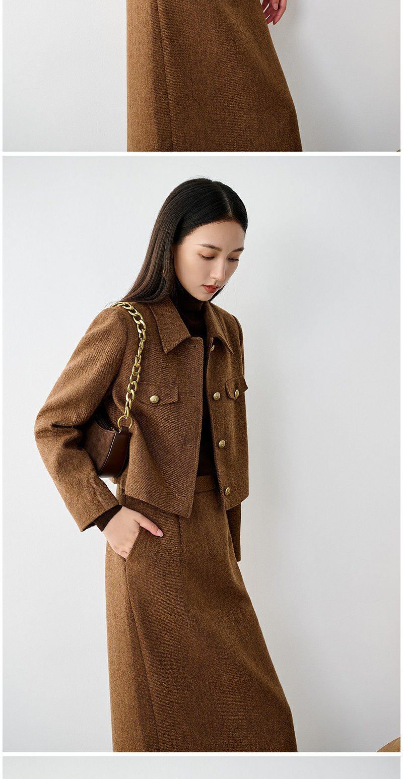 NEELLY纳俪商场同款冬新款小香风正肩显瘦短外套女绵羊毛保暖上衣N25104C04503