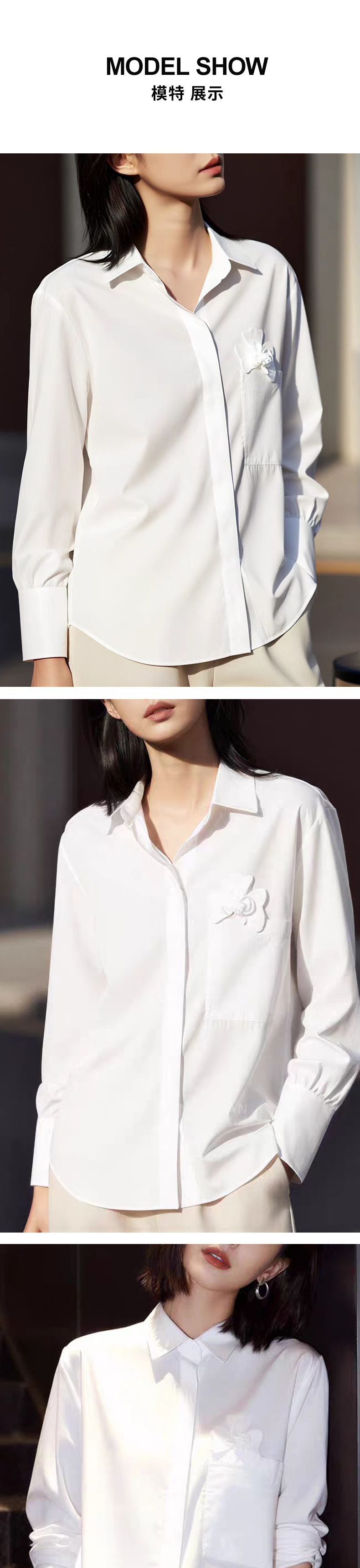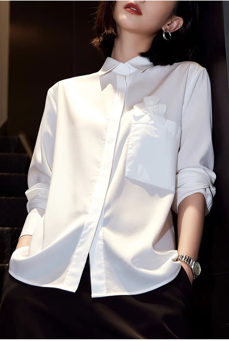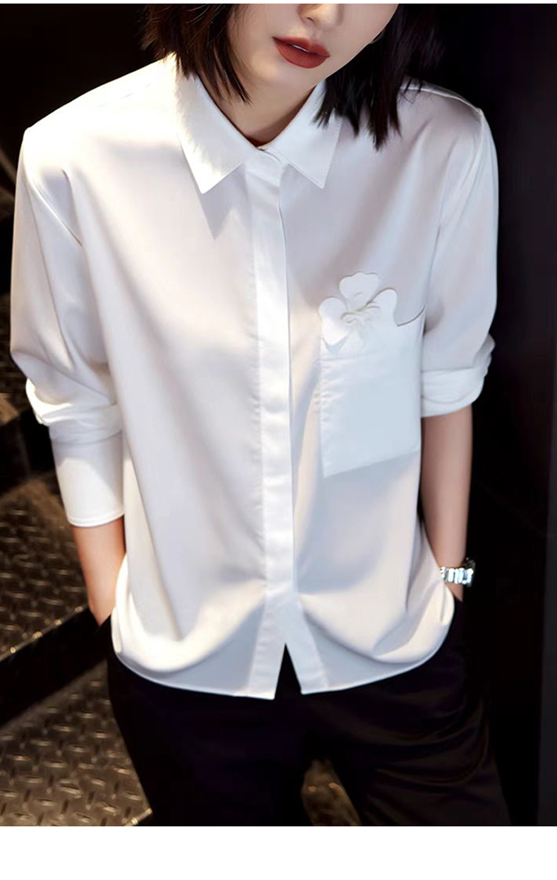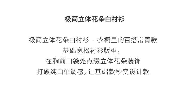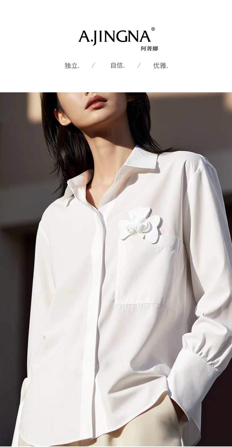【oversize版型】阿菁娜春季新款极简设计感白衬衫胸前立体花朵装饰oversize版型慵懒随性F31C201005