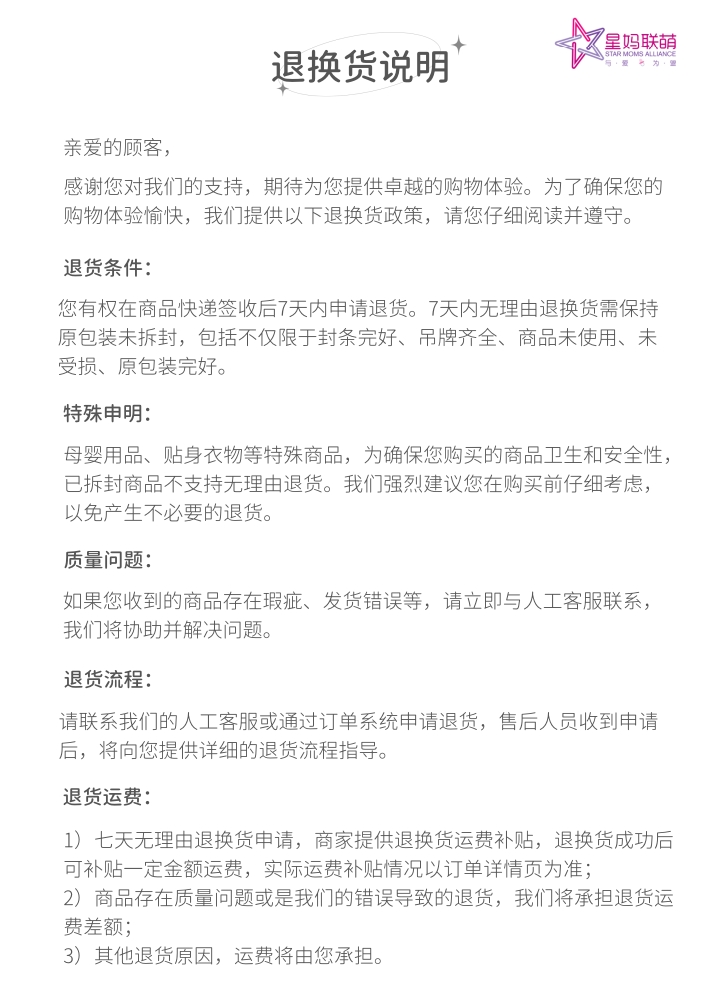 7天无理由退换政策(限整单)