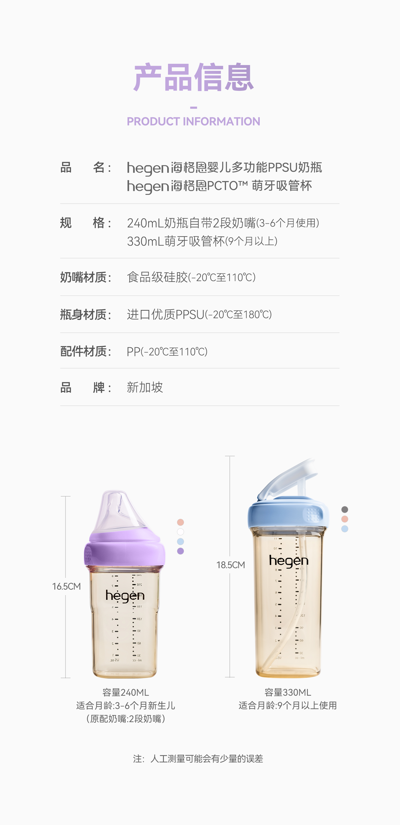 【防尘盖升级版】Hegen海格恩 PCTO™ 330mL萌牙吸管杯 送 PCTO™240mL奶瓶(白)