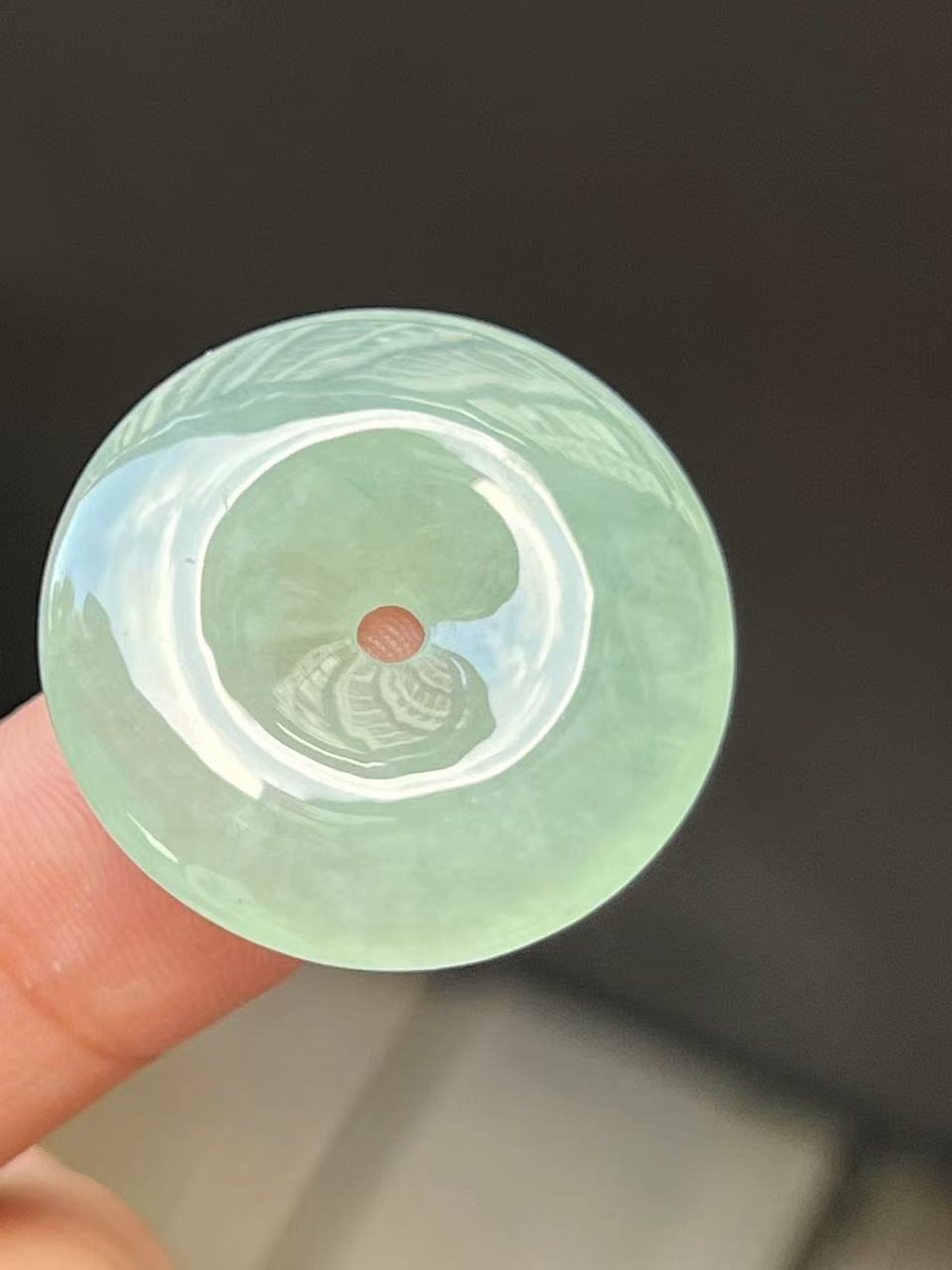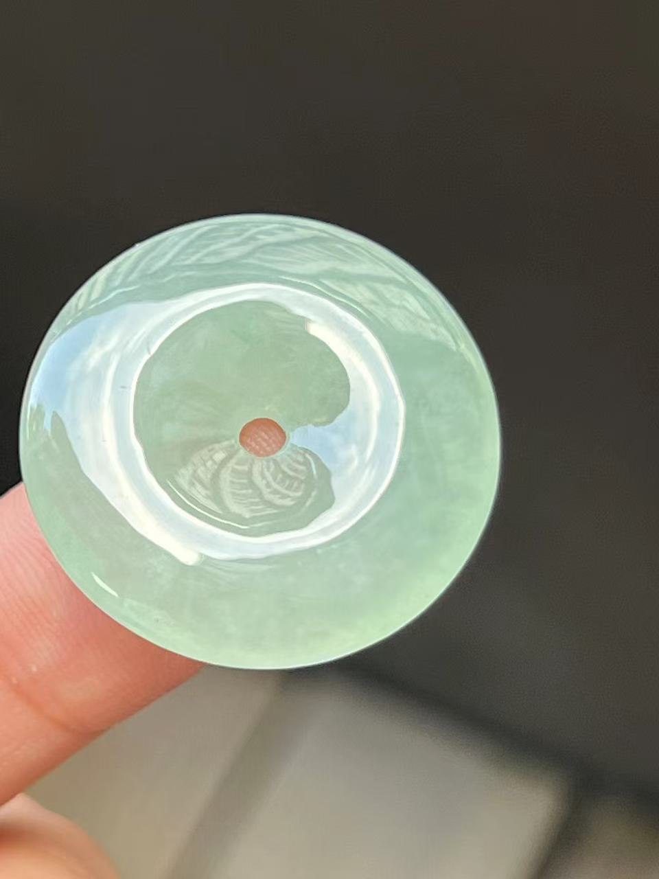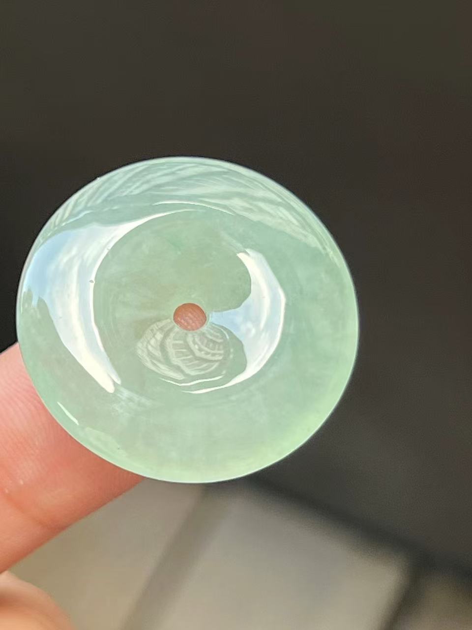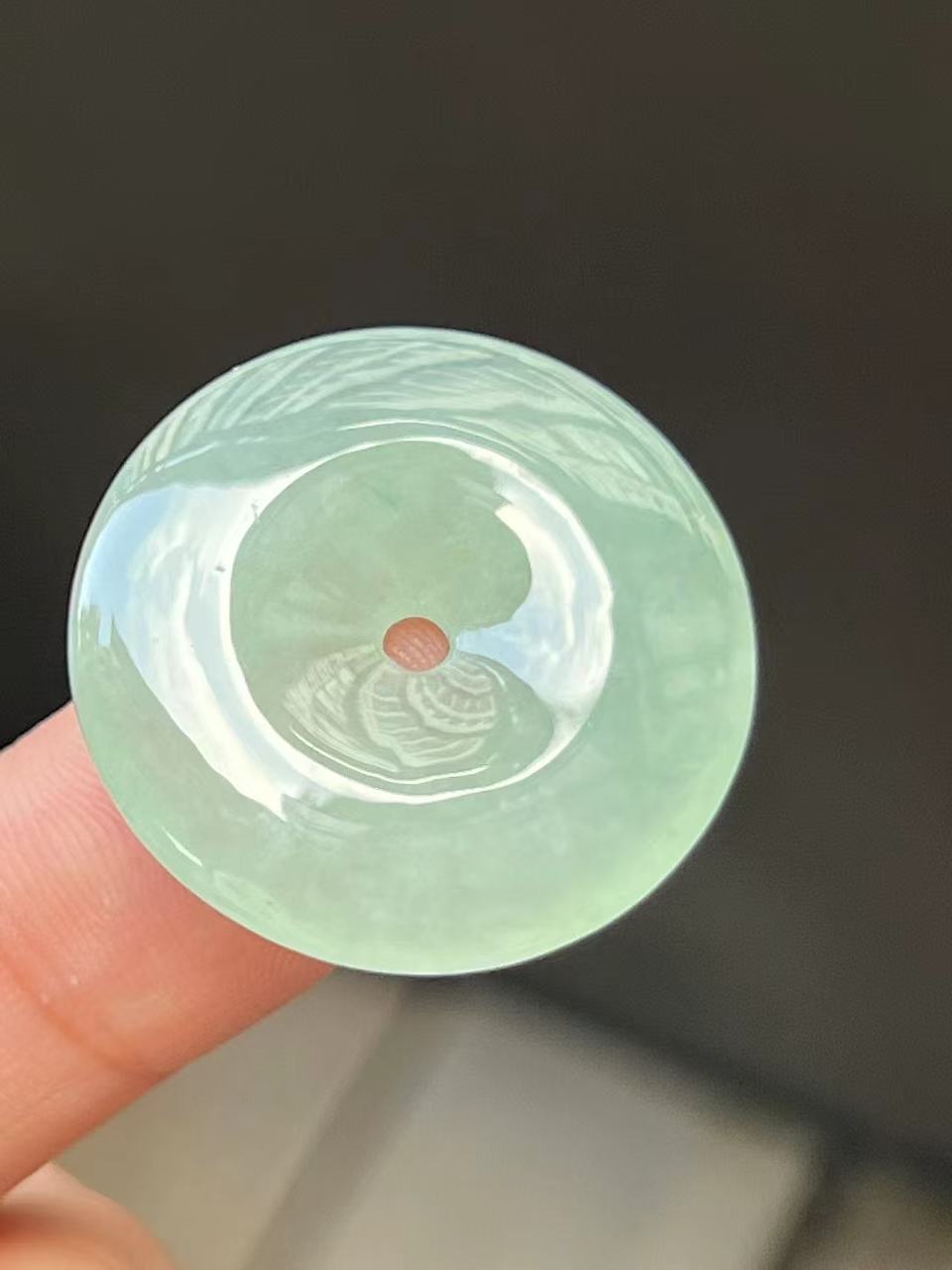 尺寸:26.8*5.5mm左右(手工测量有轻微区别属于正常情况哦)当冰种翡翠邂逅清新甜绿,一场关于美的奇迹就此诞生。这枚平安扣,色泽宛如春日枝头新抽的嫩芽,盈盈绿意透着灵动鲜活,冰种质地如澄澈湖水,清透中泛着柔和莹光,光线流转间,似有细碎星光在玉石表面跃动。圆润饱满的形制,触手温润细腻,将东方美学的含蓄与优雅诠释得淋漓尽致。“扣心怀德,平安顺遂”,佩戴于身,不仅是一件精美饰品,更是一份对平安与美好的期许,无论是赠予挚爱,还是珍藏自赏,皆为上佳之选。