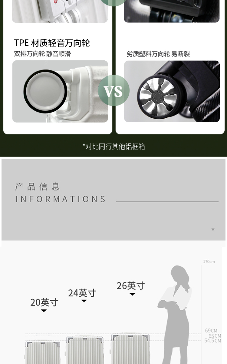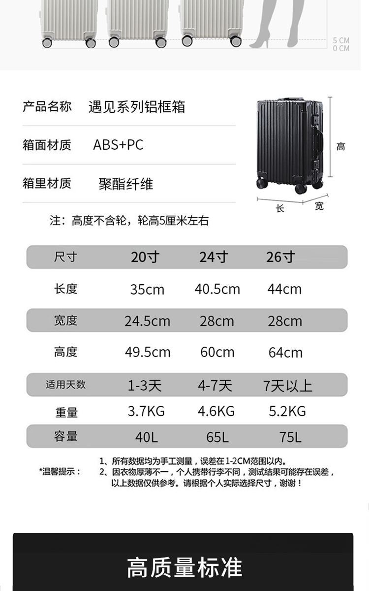 美国Rockland新款铝框硬箱行李箱男女学生登机箱旅行箱子结实耐用拉杆箱-遇见CRX101C