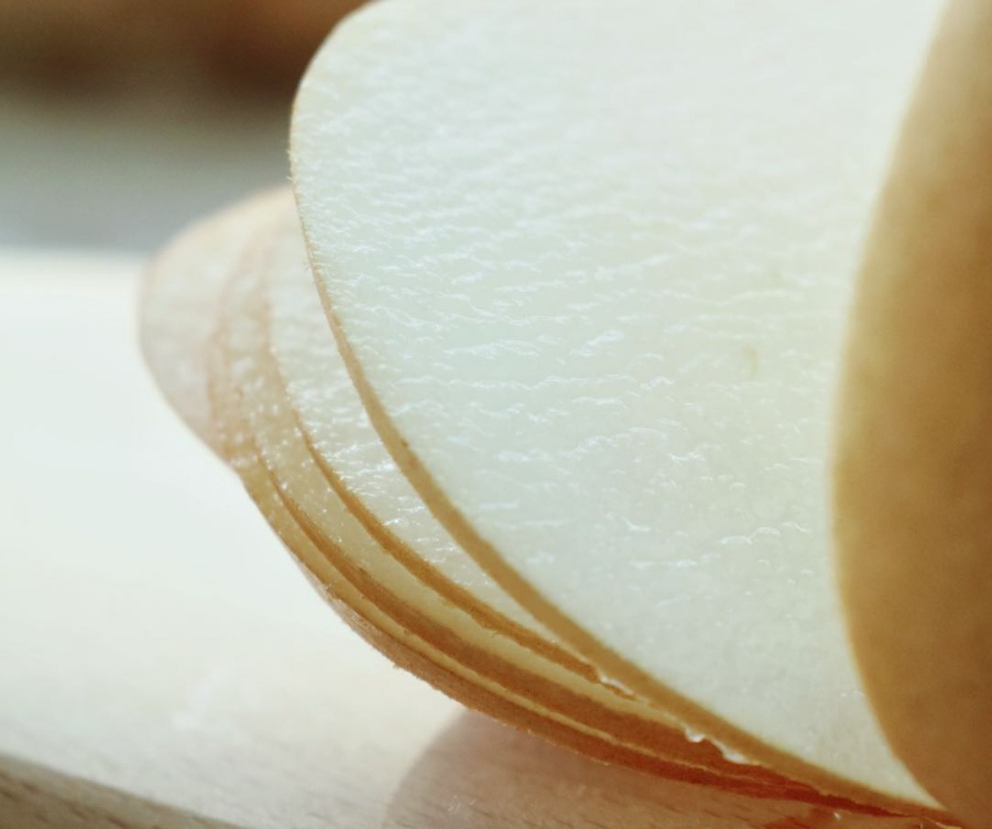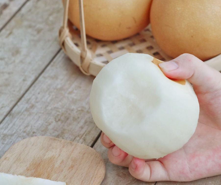 汁多甘甜,果肉细腻无渣,秋月梨水能达到81%, 就像一个存储蜜汁的罐子,随便一口都会感觉汁水横流。