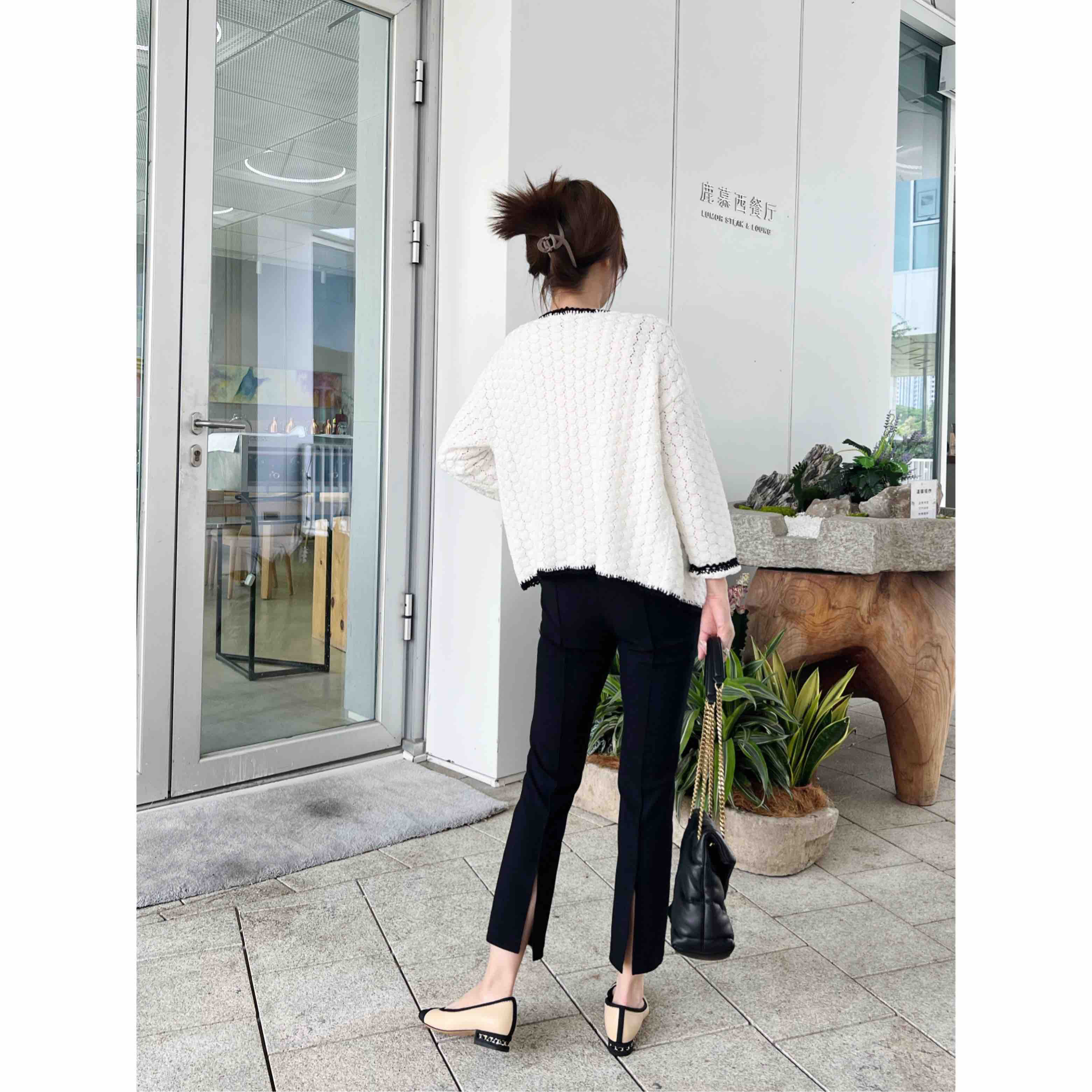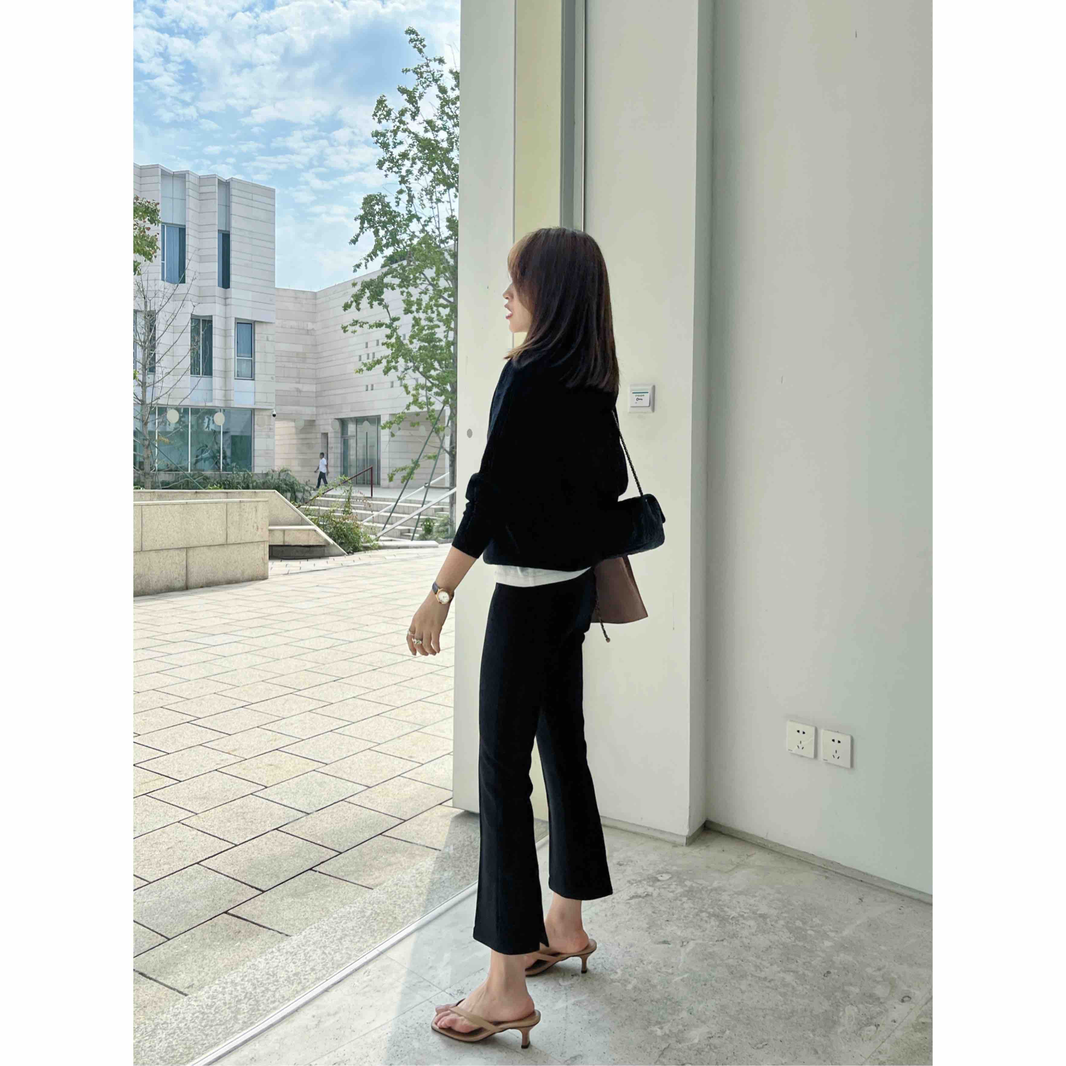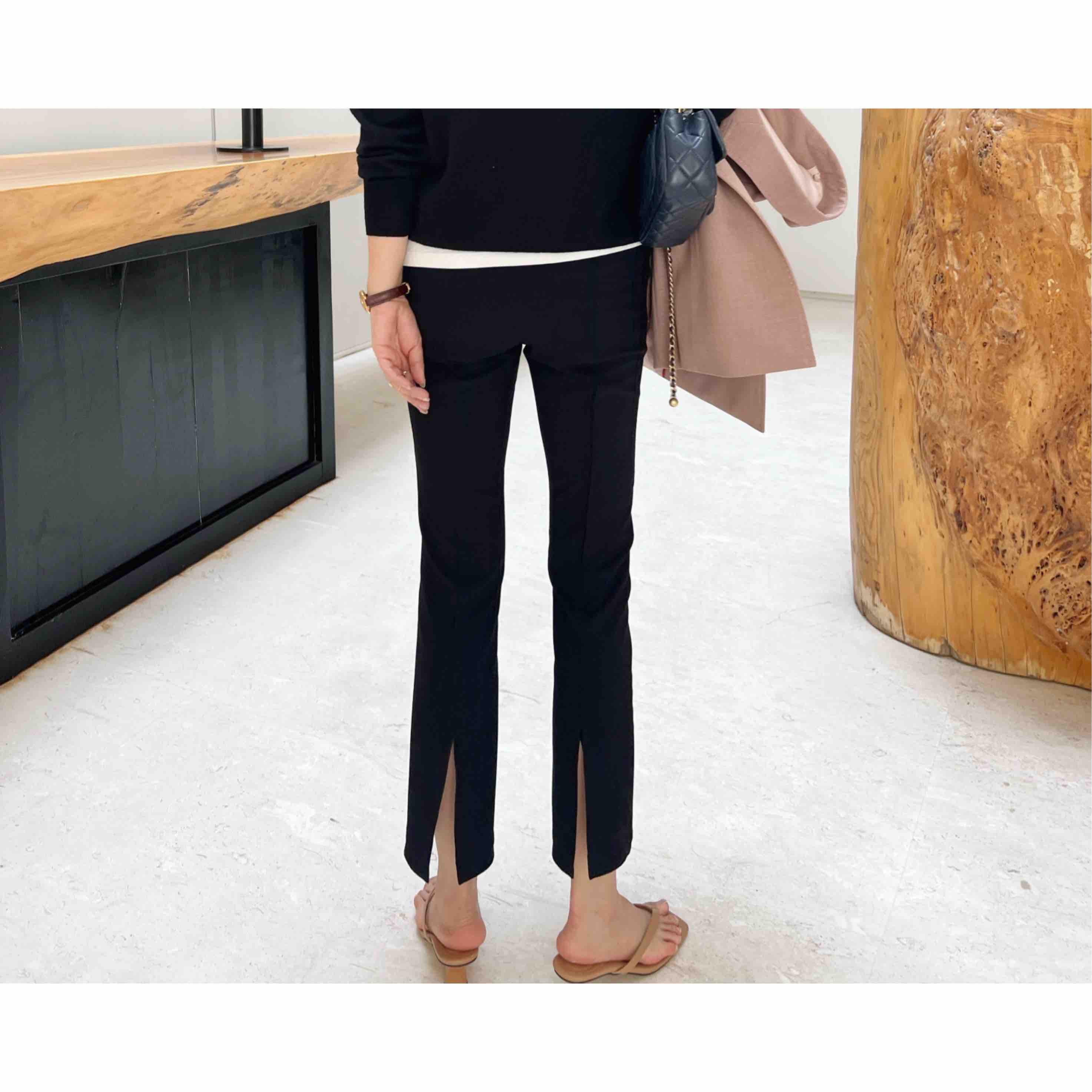 版型是直筒的,因为背后开衩,看起来有点小微喇。上腿显瘦。而且很好穿。