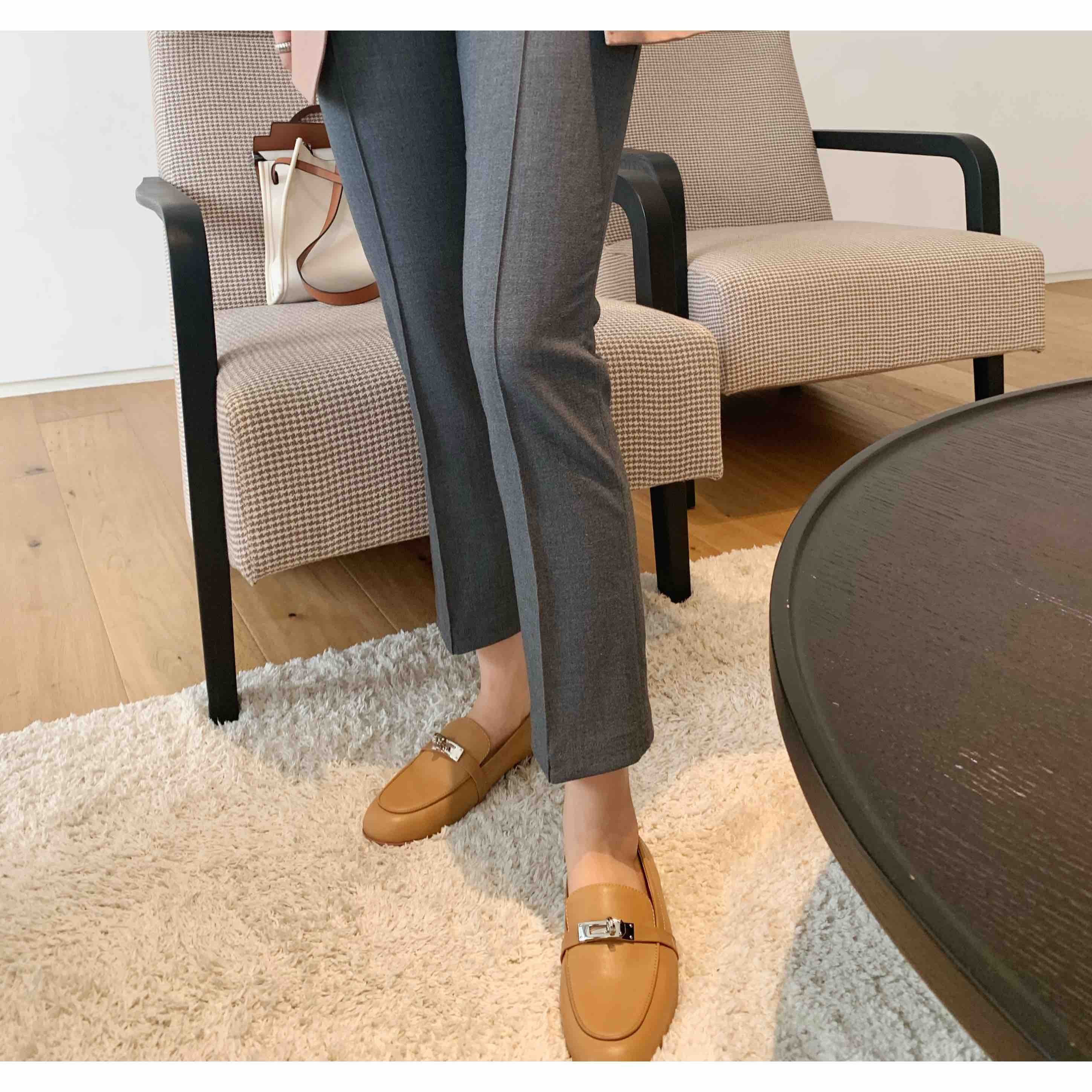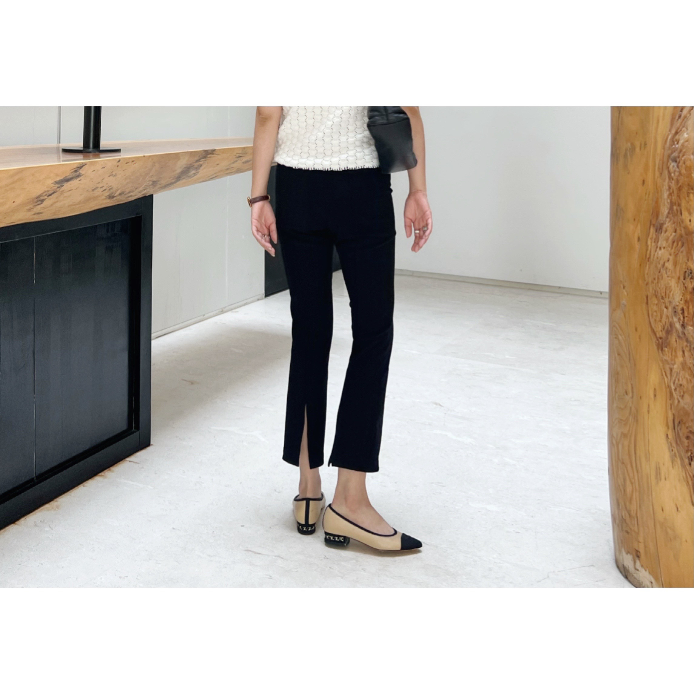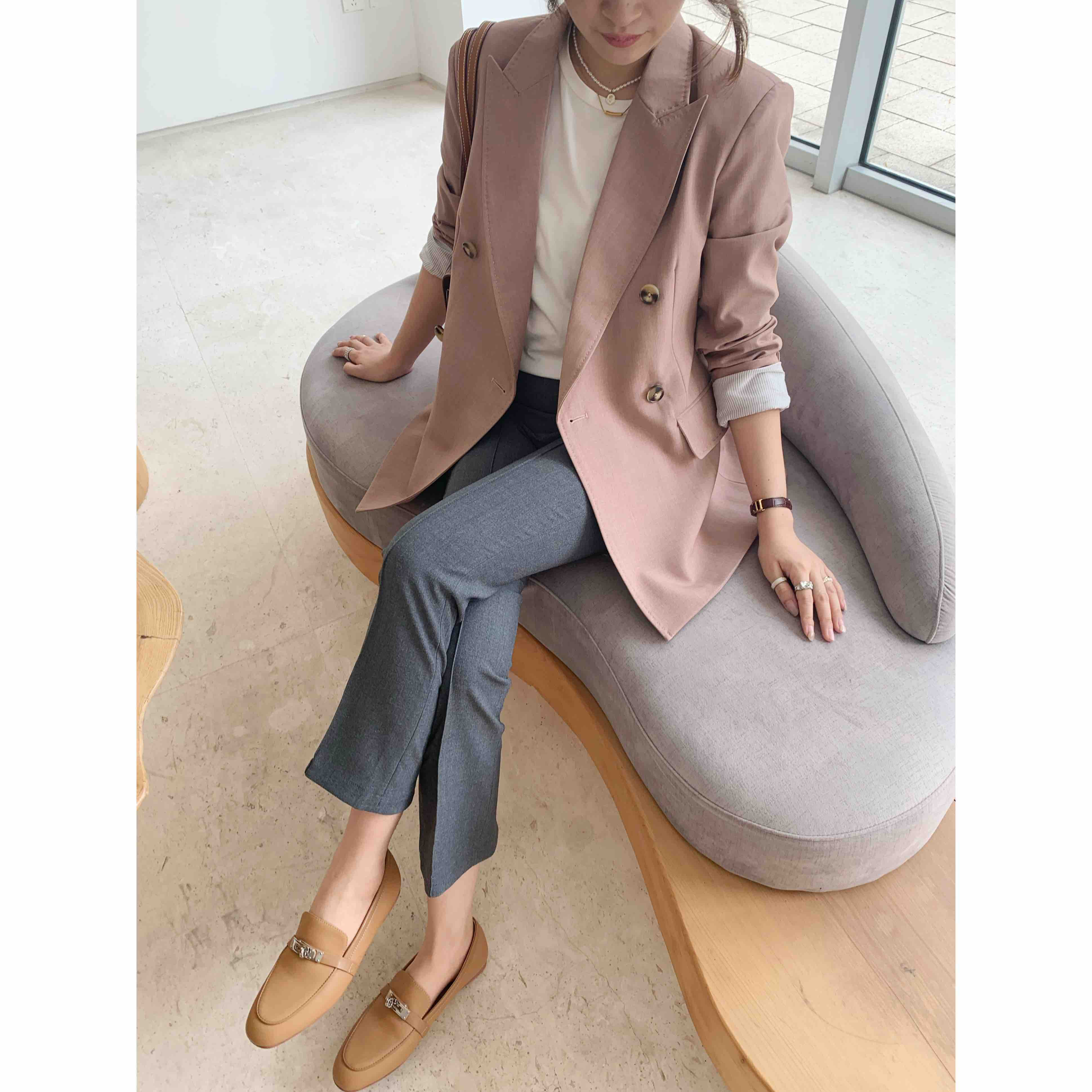 版型是直筒的,因为背后开衩,看起来有点小微喇。上腿显瘦。而且很好穿。