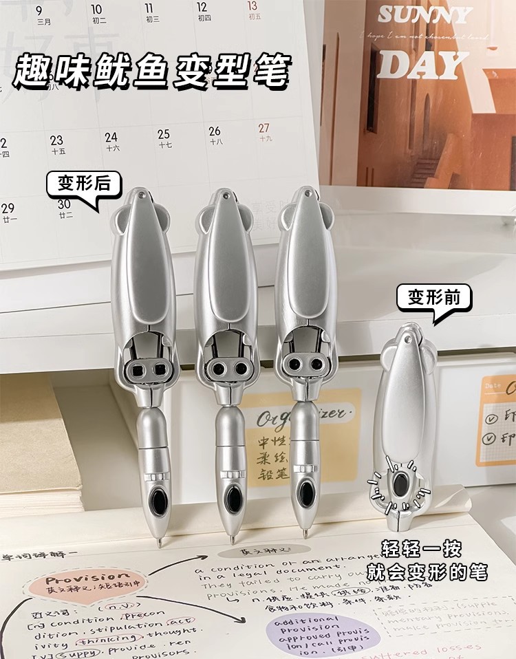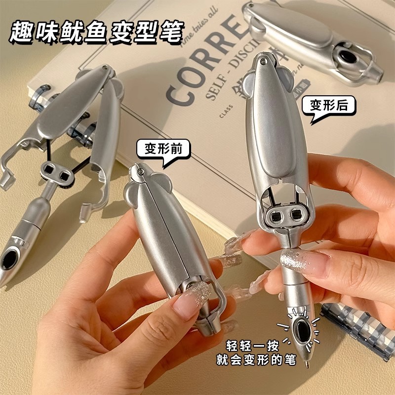 【19.9限时抢!下单就赠送50支笔芯】趣味鱿鱼变形笔,圆滑笔枰,握感舒适,黑科技网红变形笔,开学季按压式圆珠笔中性笔L