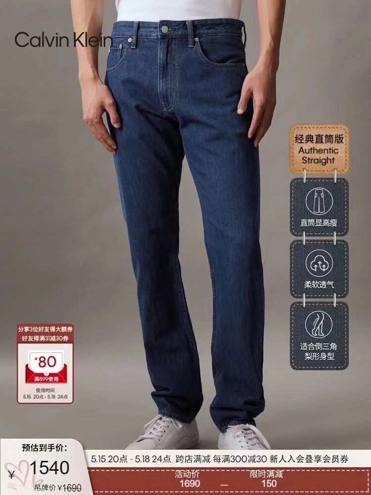 CK24年春夏新款男士复古纯棉直筒牛仔裤,