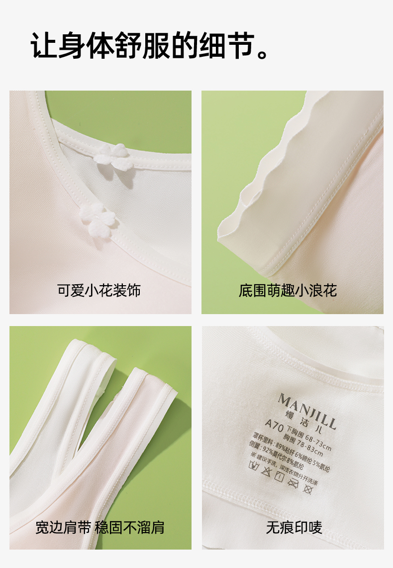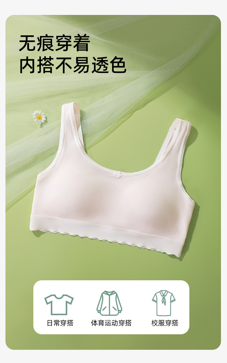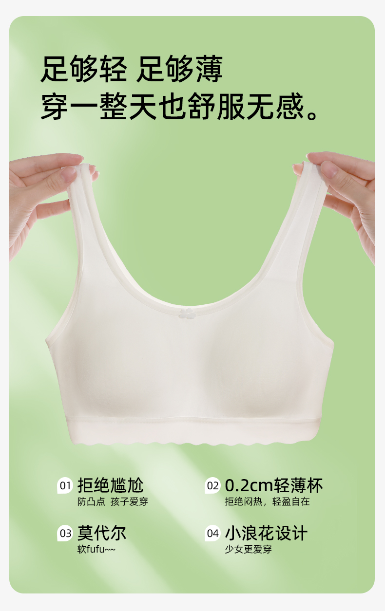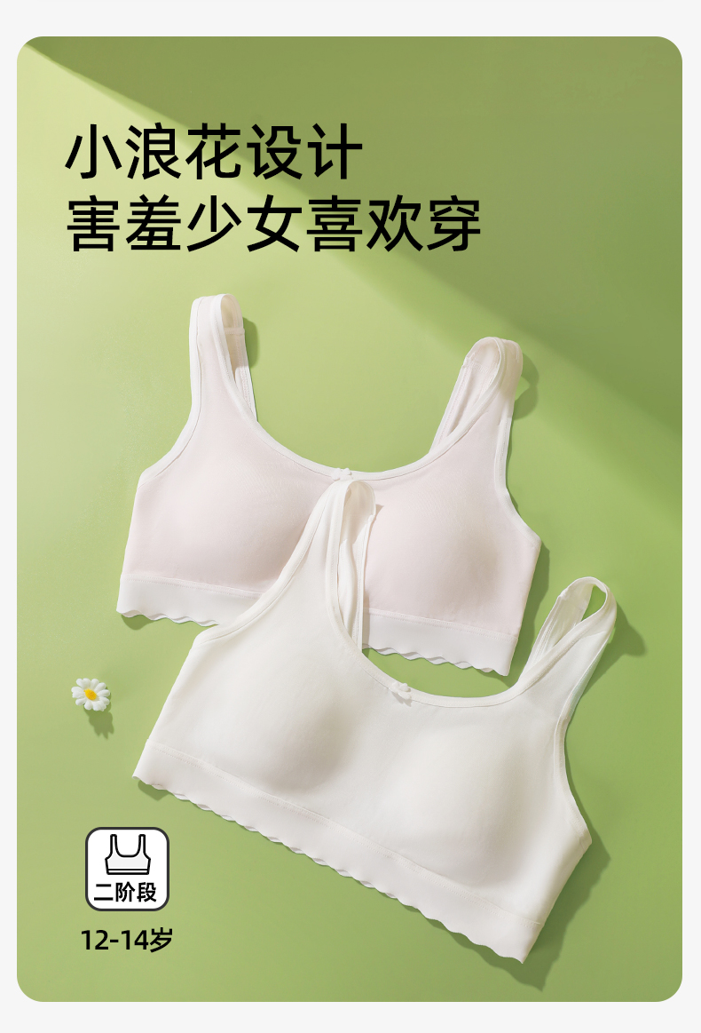 【第3件0元】熳洁儿 二阶段少女围12-14零碳莫代尔小浪花小圆杯背心式学生文胸25701602/25761602