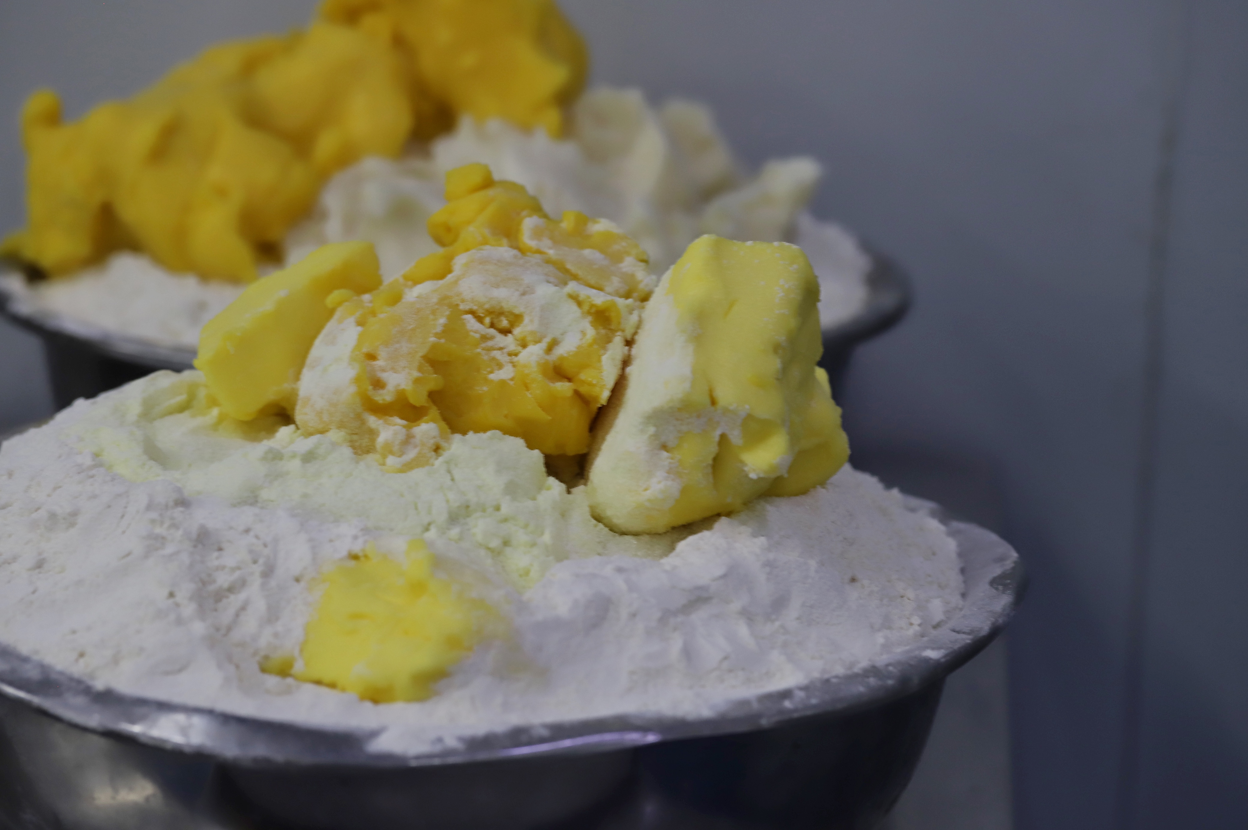采用地道的云南鲜花饼传承手艺“十八层开酥工艺”将面皮和面芯融合在一起,制成饼皮。这样制作出来的鲜花饼皮口感层次丰富,酥软。