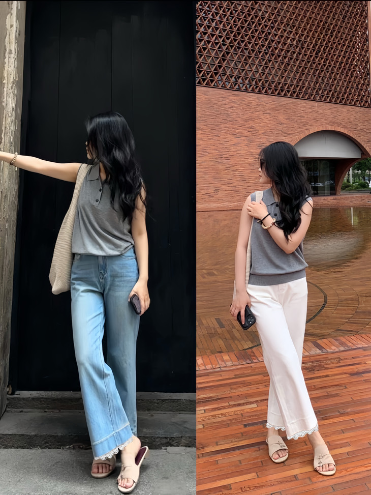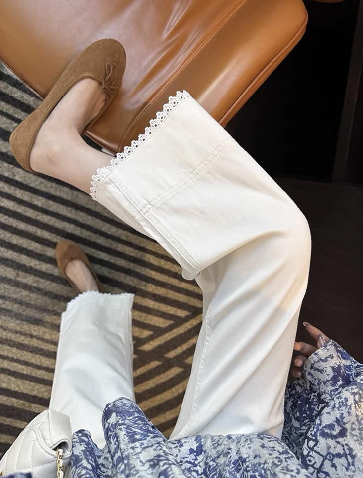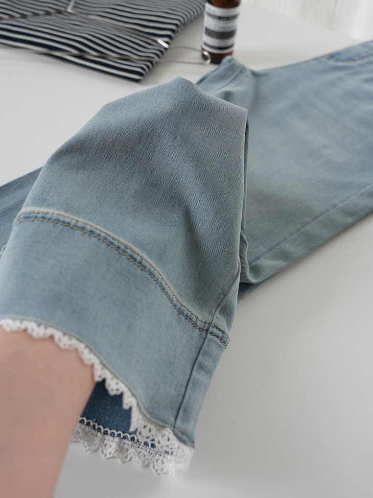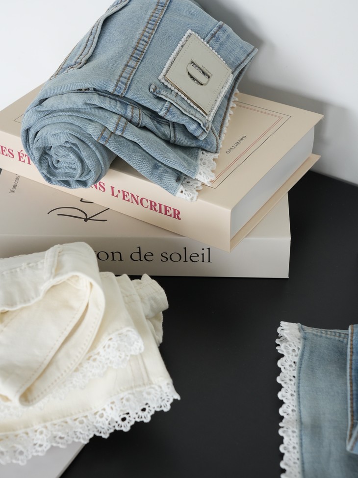 裤脚拼接蕾丝边卷,让穿搭脱颖而出~