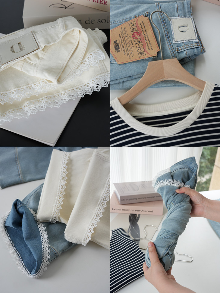 裤脚拼接白色蕾丝,给夏天增添了几分活力🍃