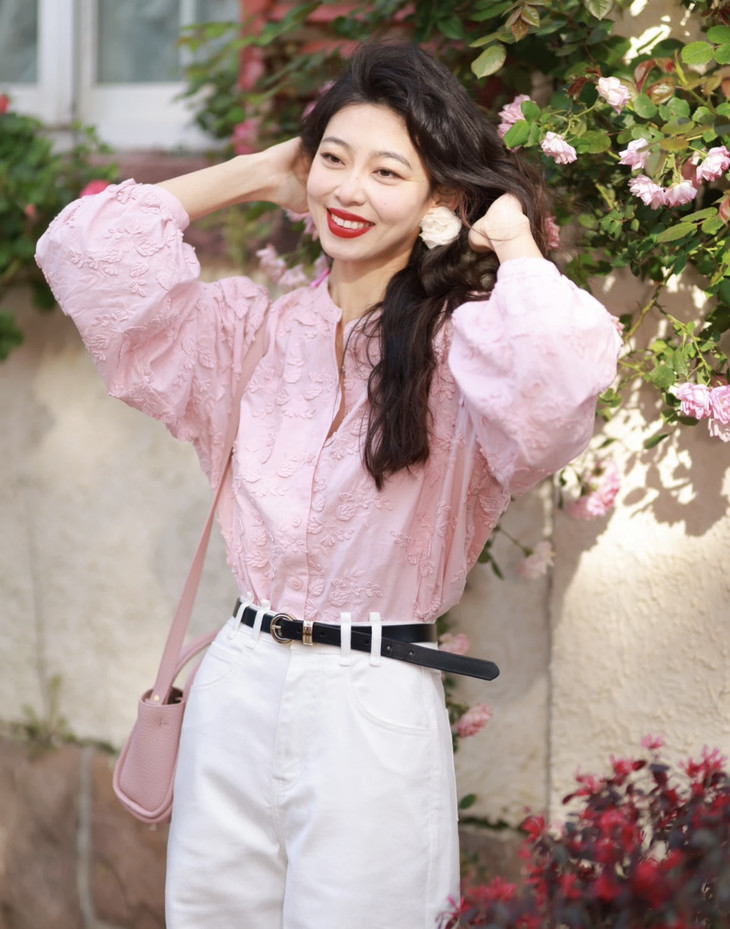 浅蓝和白色超适合夏天,上身随便一搭,耐看又有品位