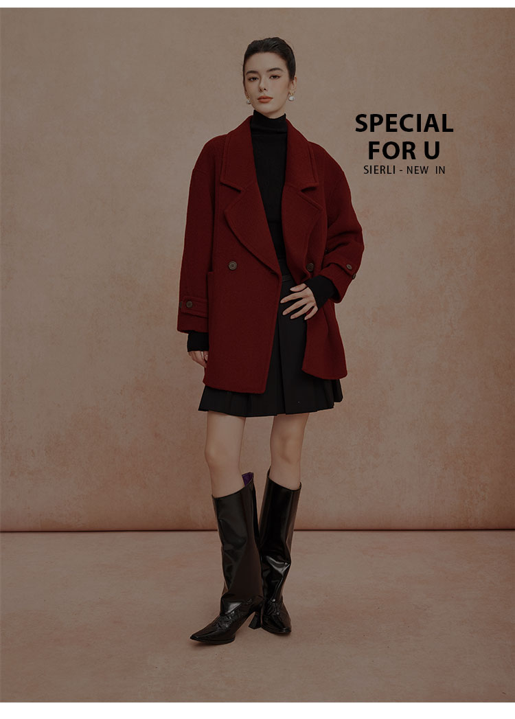QH926斯尔丽2025新款韩版廓形慵懒风一手长女式羊毛大衣
